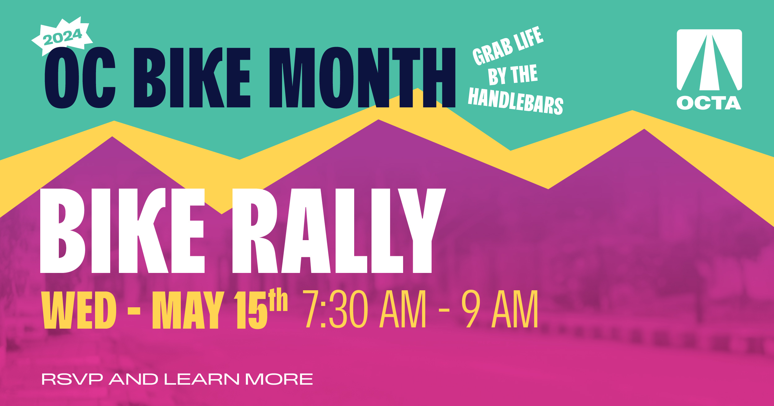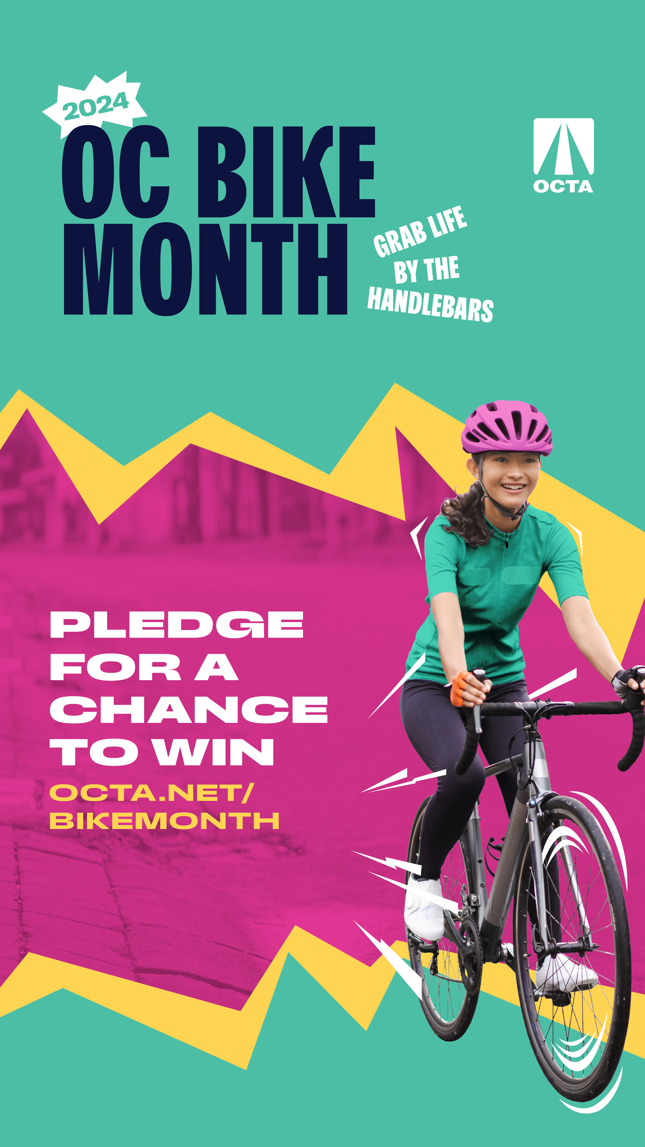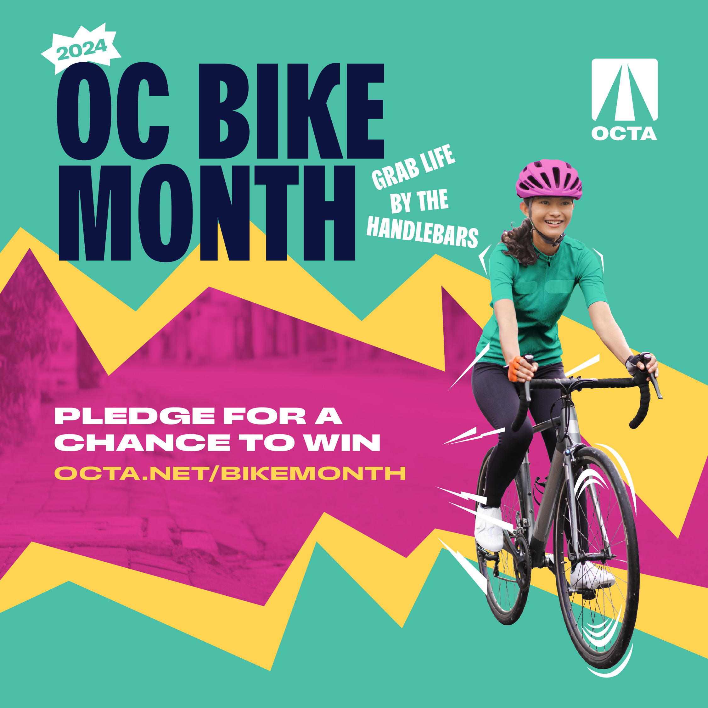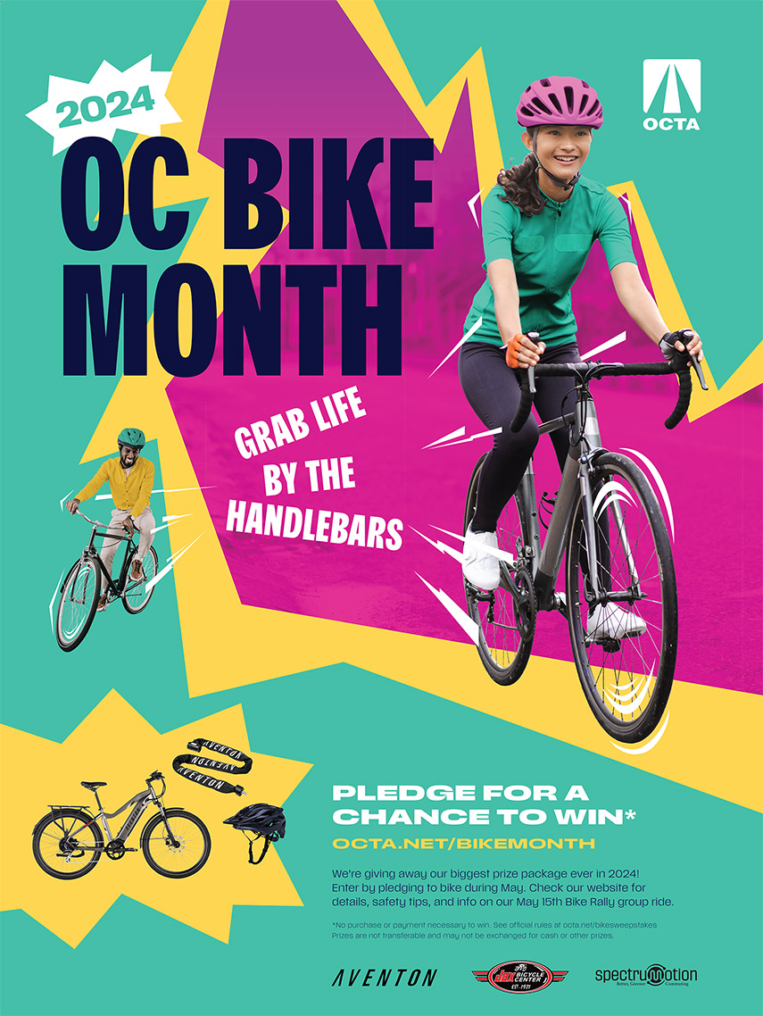 OCTA promotes biking during May’s Bike Month by offering a sweepstakes for those who pledge to bike at least once in Orange County. A Bike to Work Rally on May 15th is also included in the promotion.