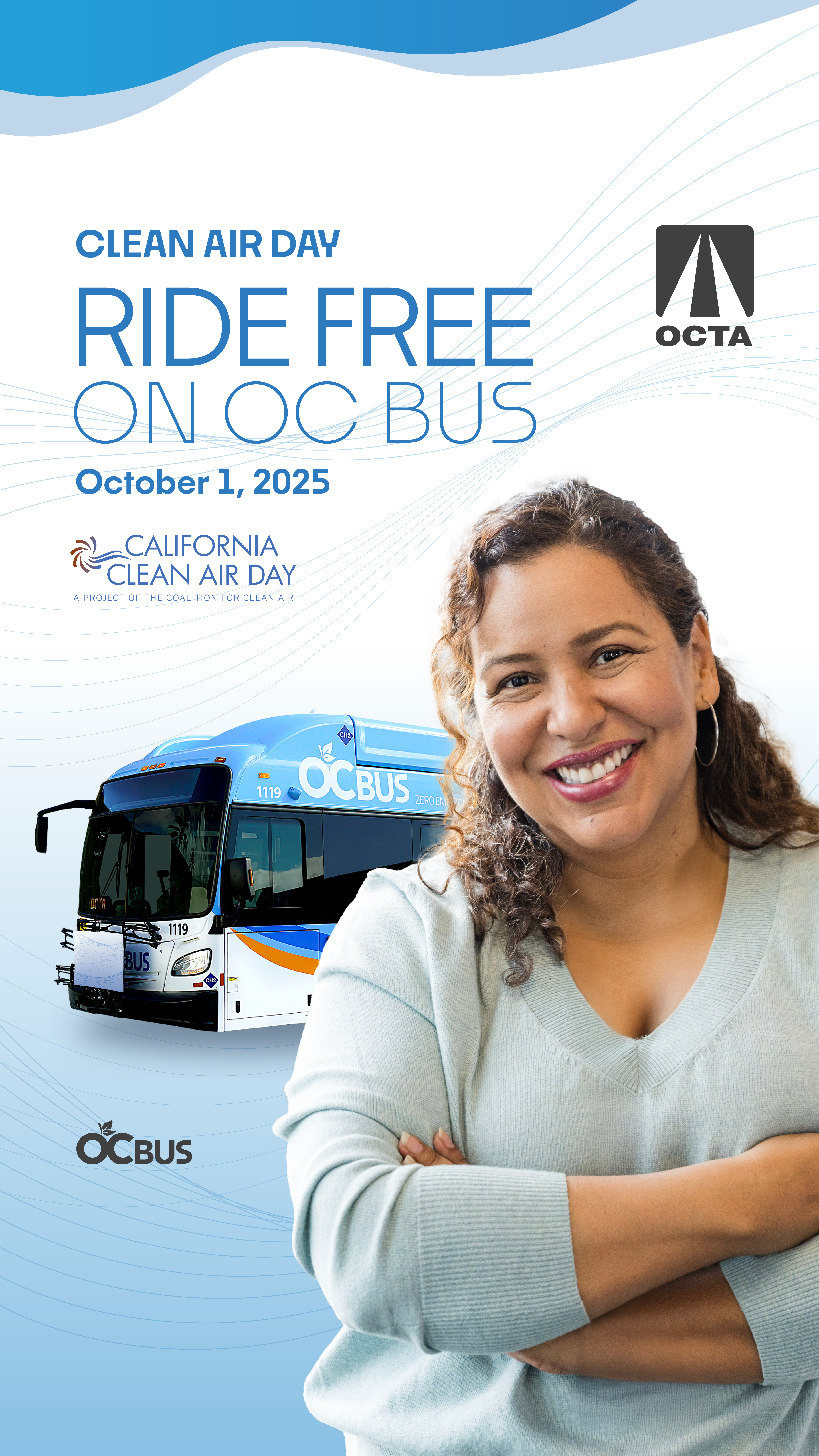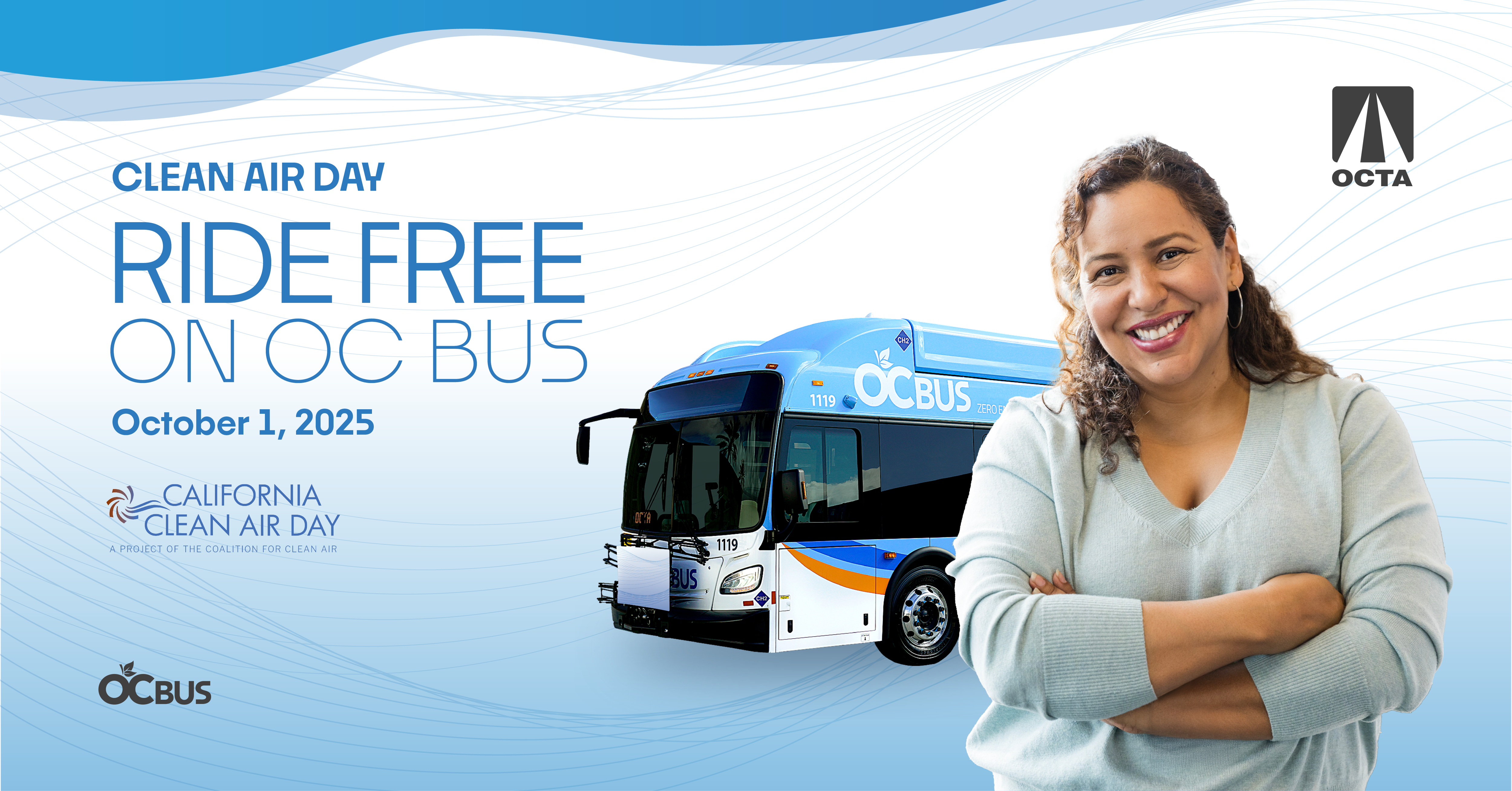 California Clean Air Day is October 1. Enjoy a FREE ride on OC Bus and make a difference for the planet.
