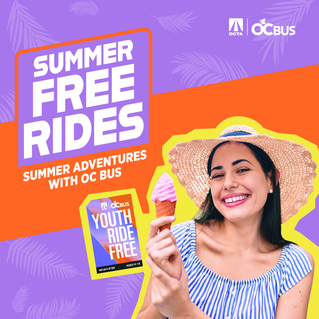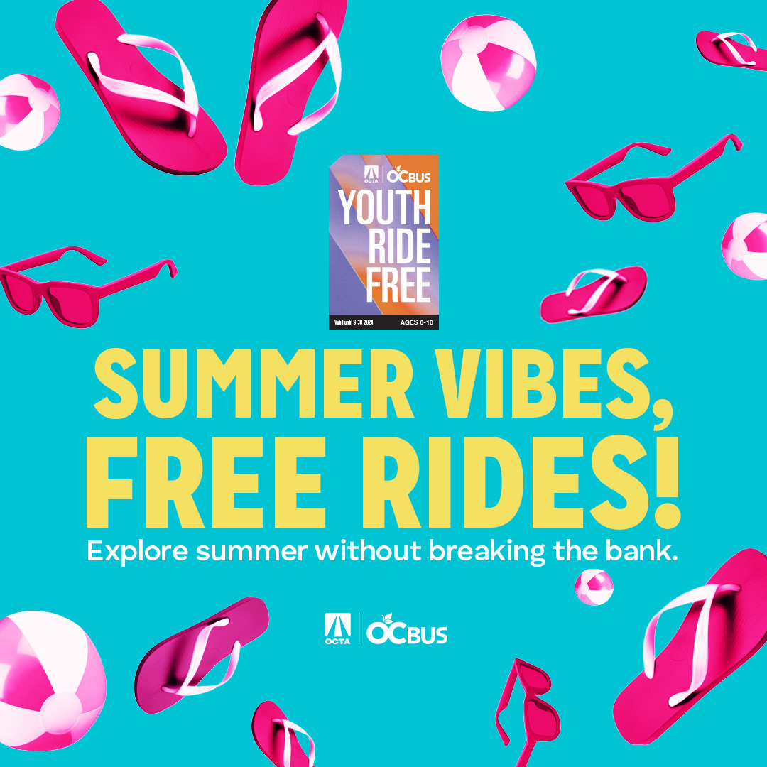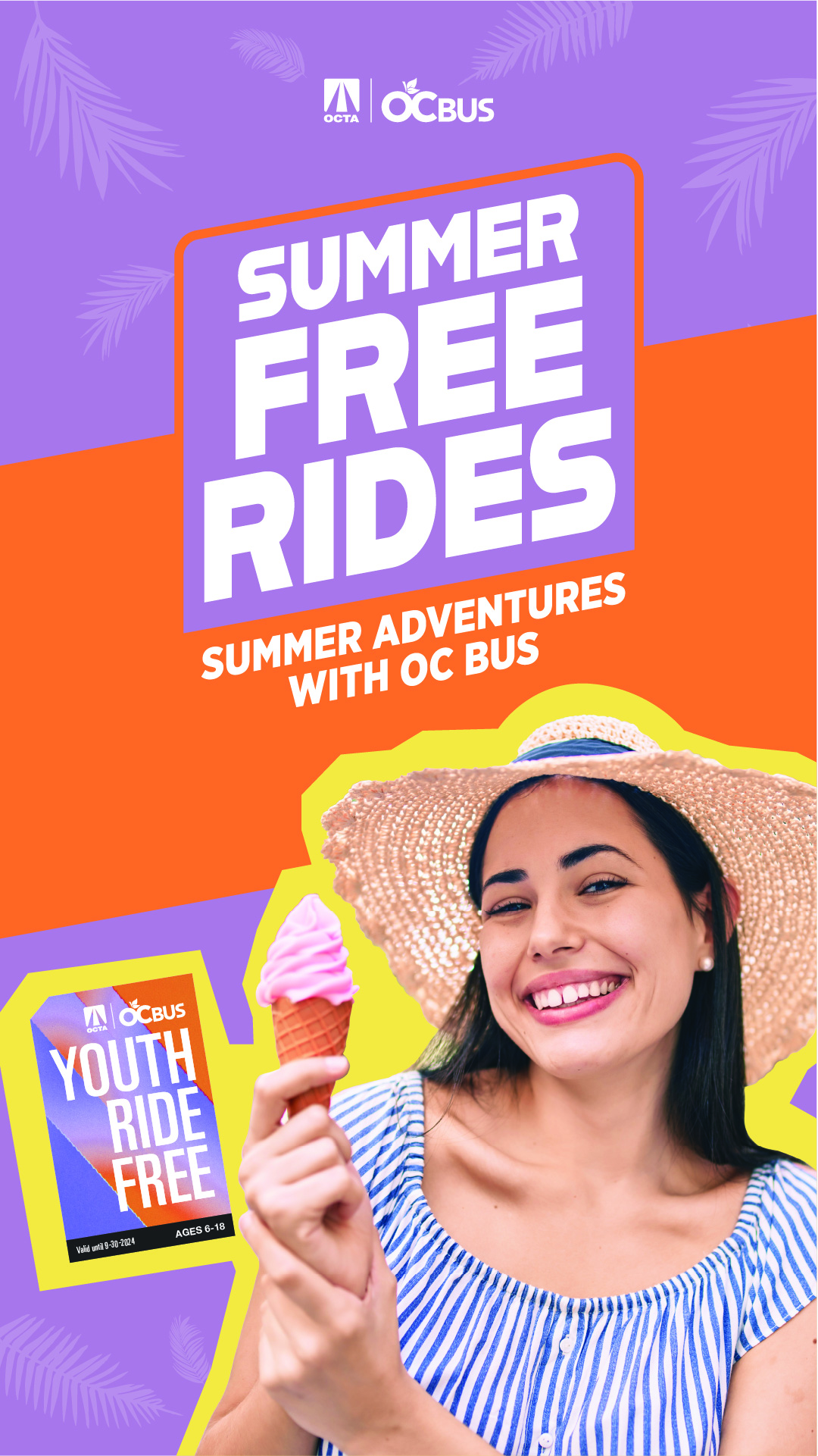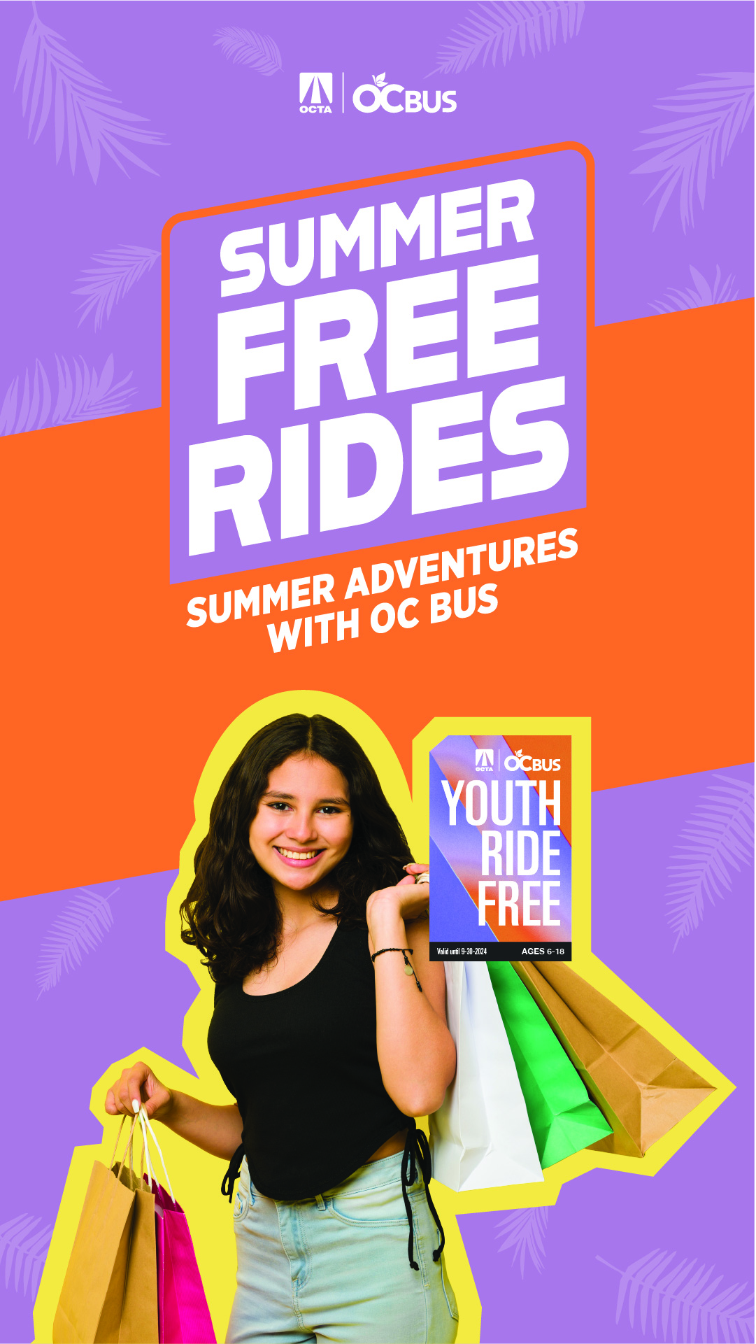 The OCTA Youth Ride Free Program provides youth ages 6 to 18 with free travel on OC Bus fixed-route service to school, work or fun on safe, clean and reliable buses.