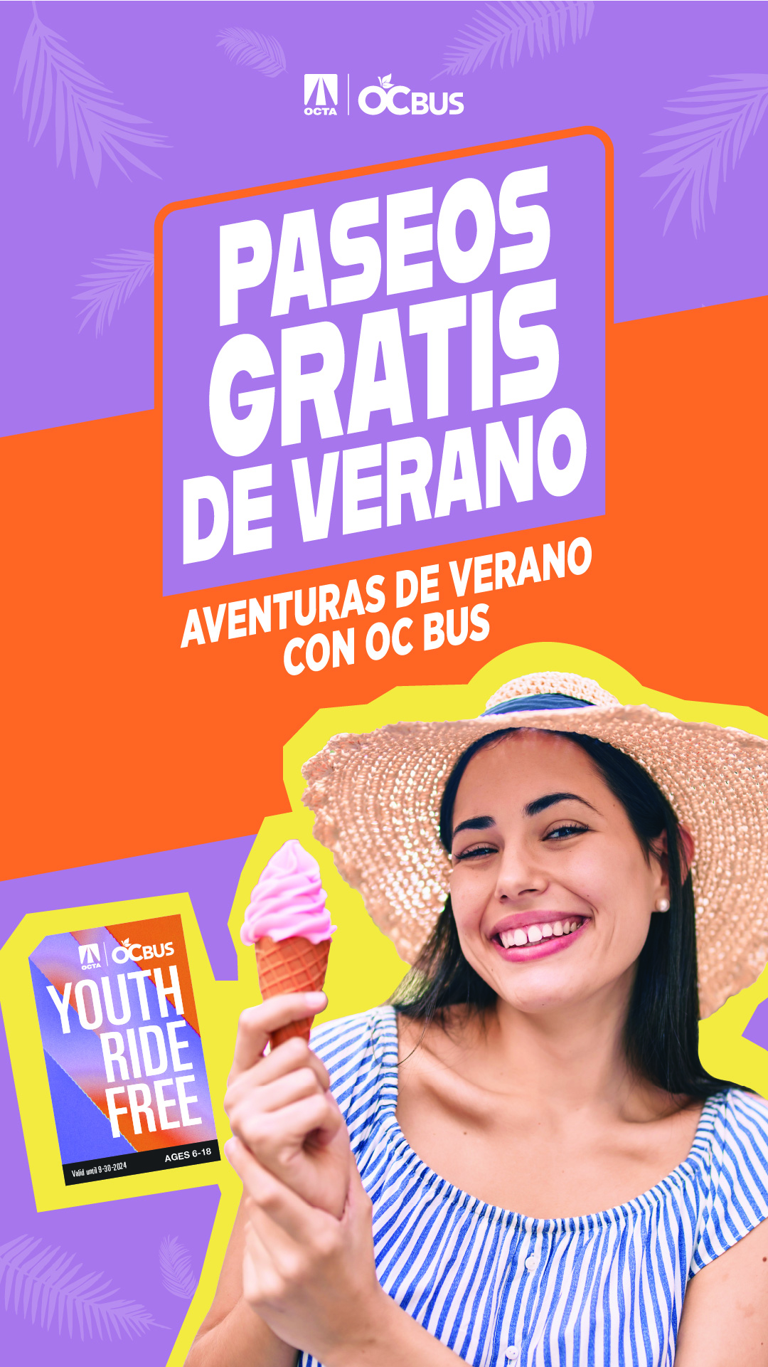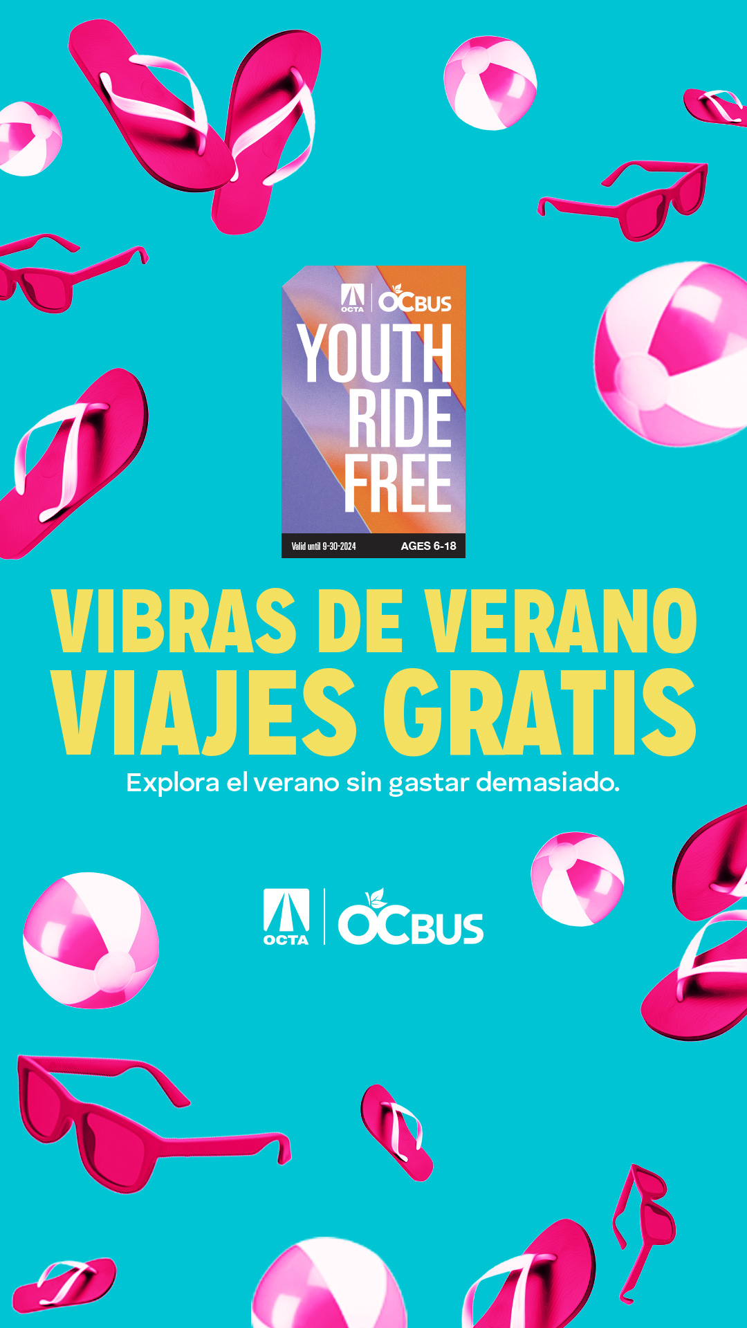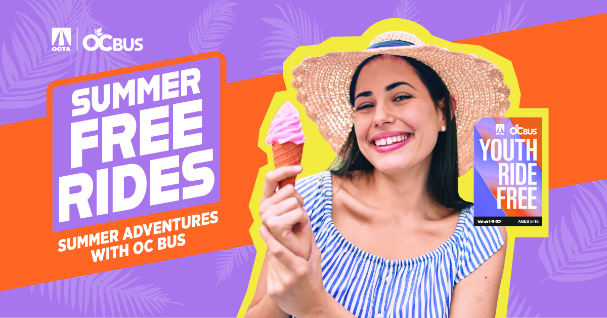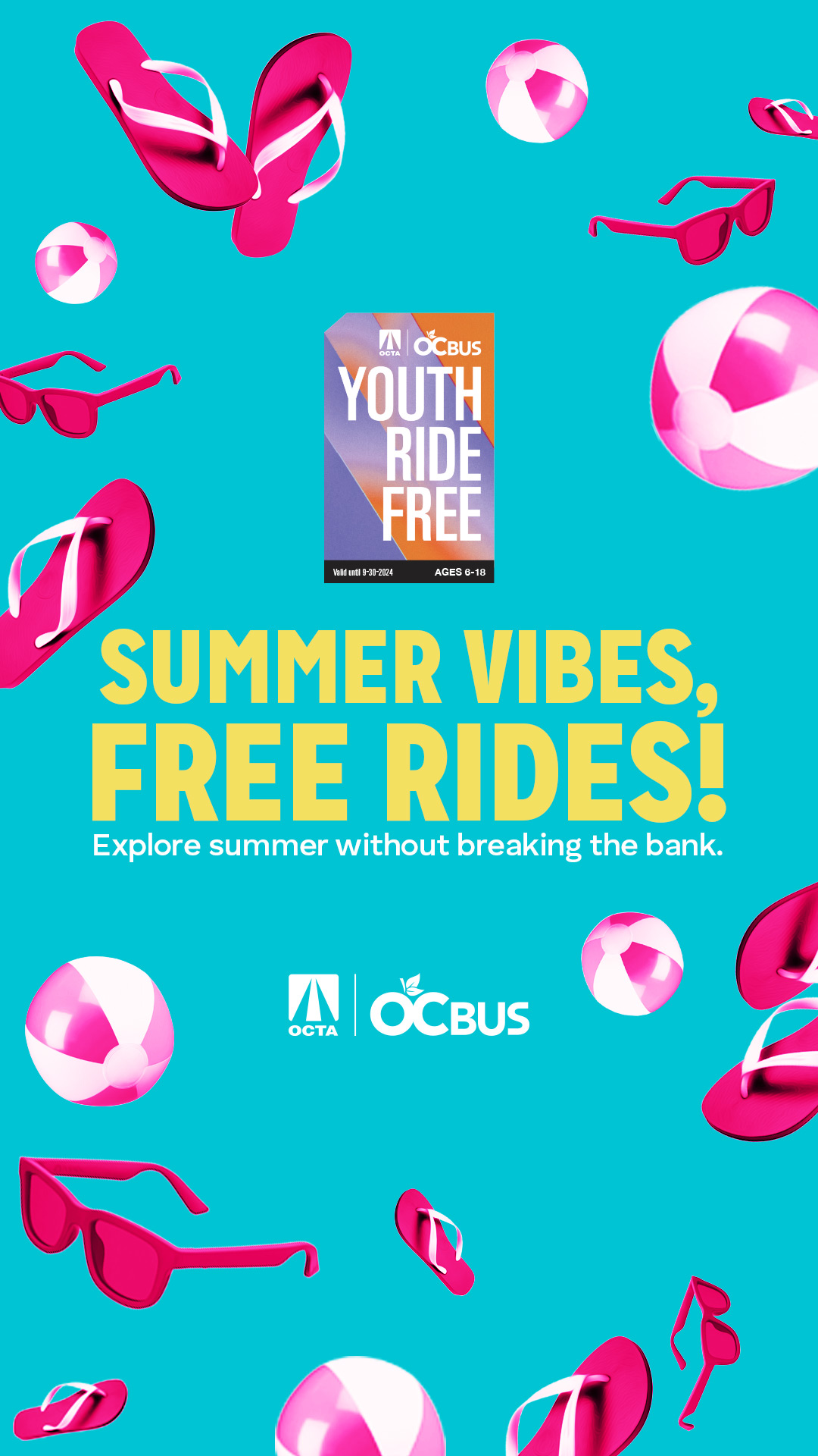 The OCTA Youth Ride Free Program provides youth ages 6 to 18 with free travel on OC Bus fixed-route service to school, work or fun on safe, clean and reliable buses.