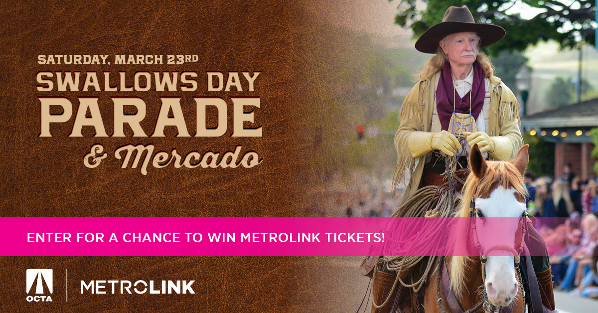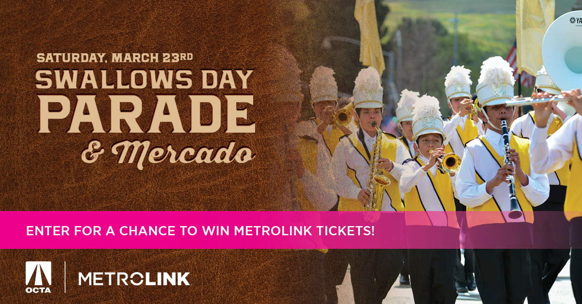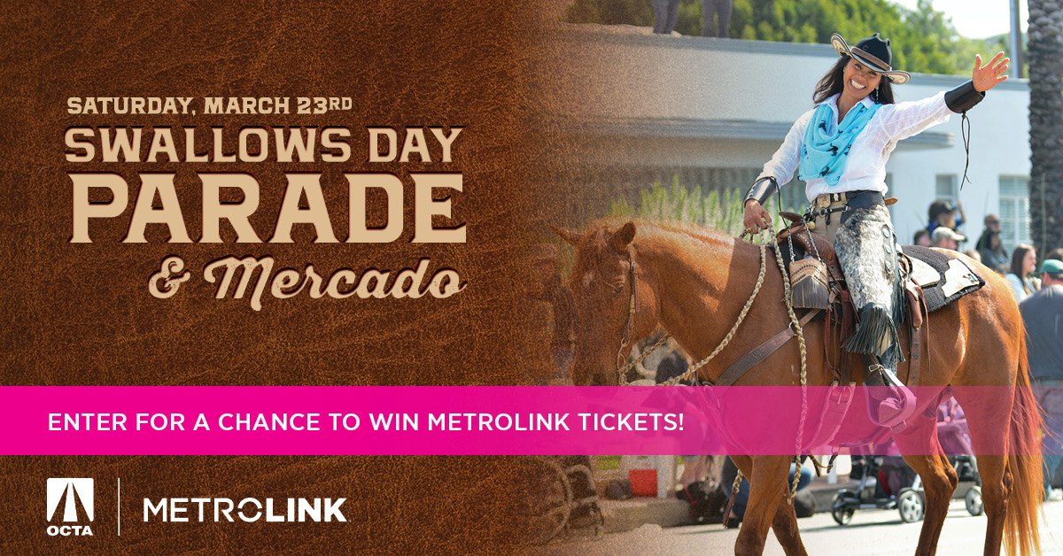 Taking Metrolink is the easy way to get to the 64th Annual Swallows Day Parade and Mercado in San Juan Capistrano on Saturday March 23rd. Metrolink drops riders off within a short walk to the parade route.