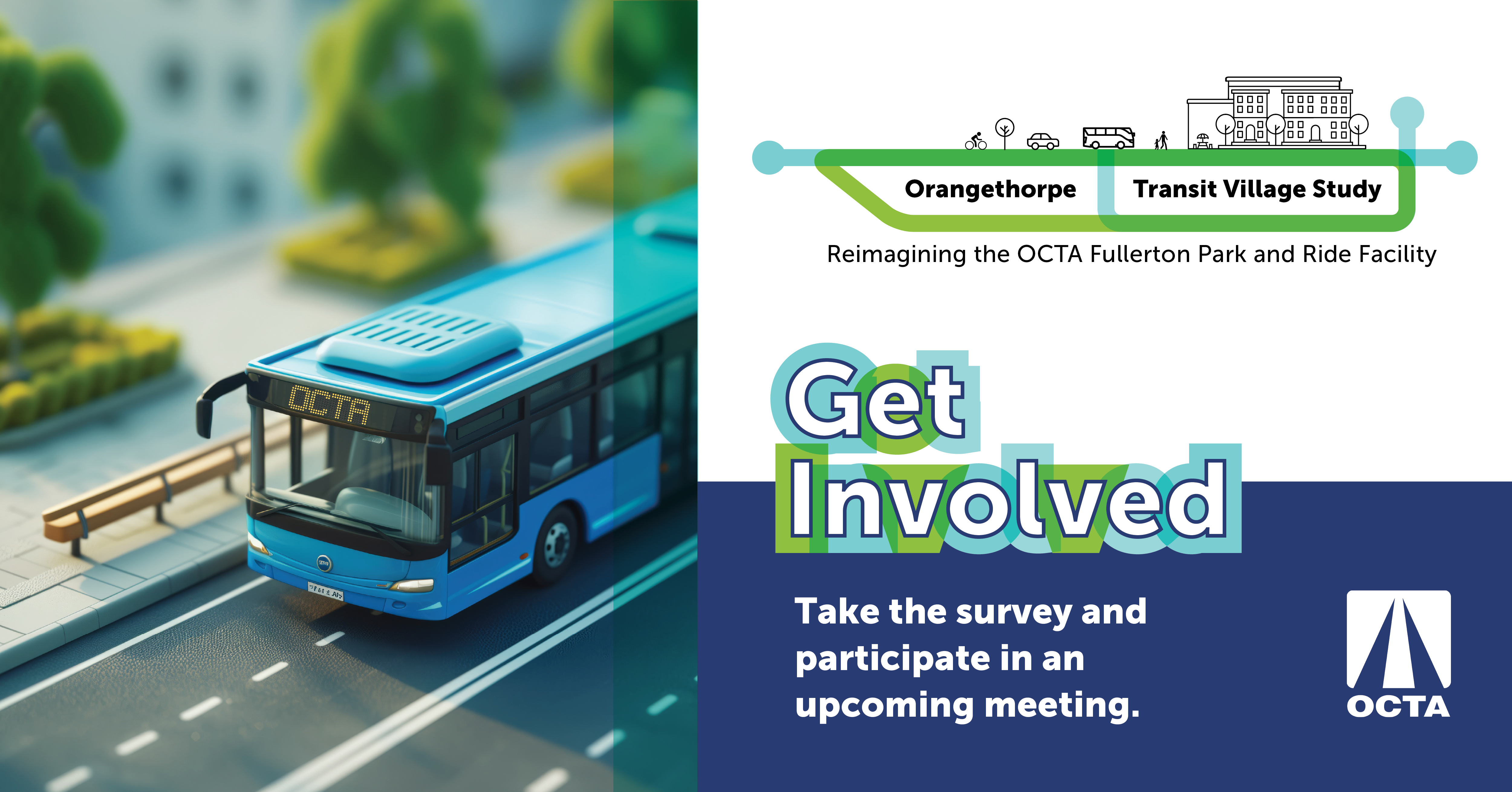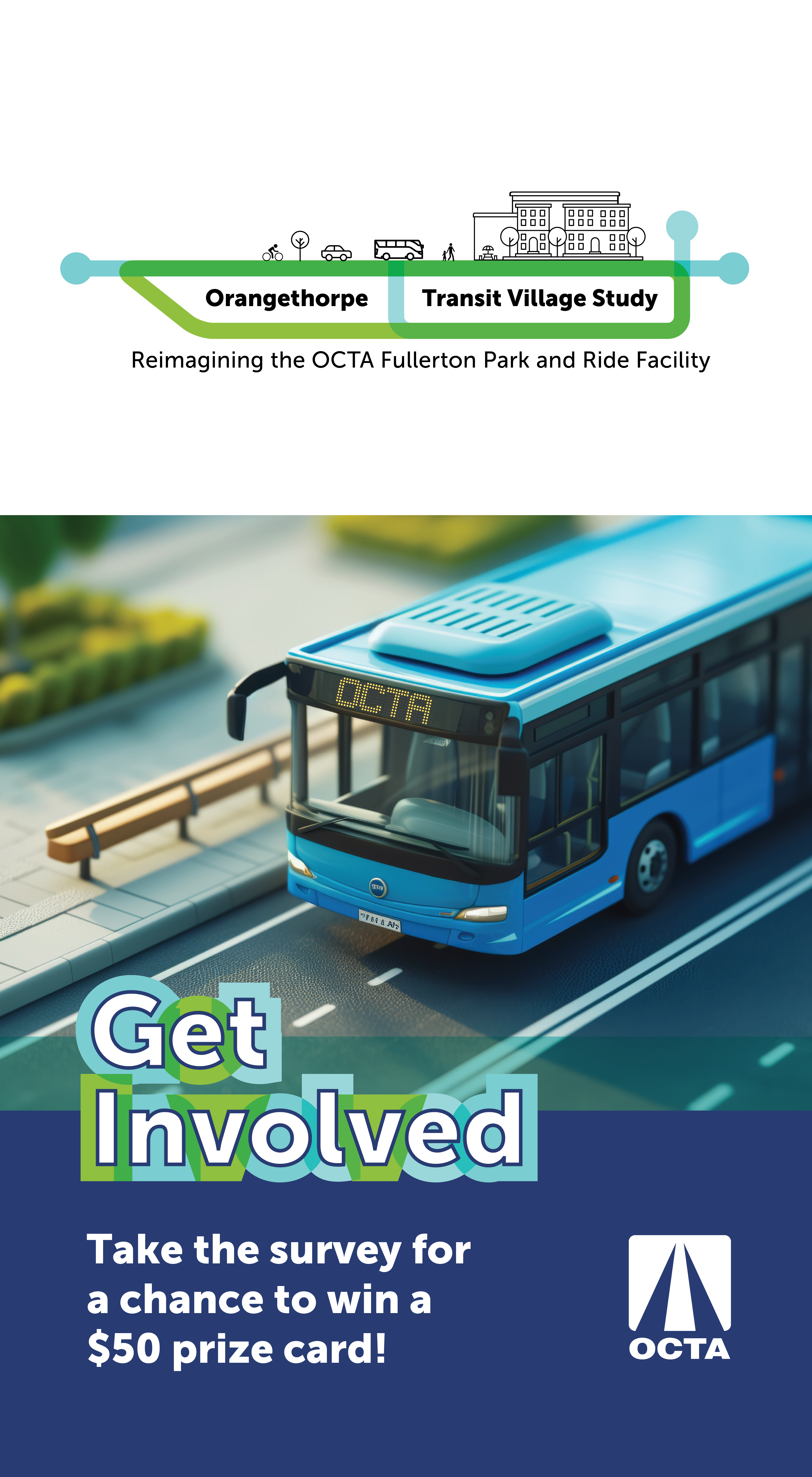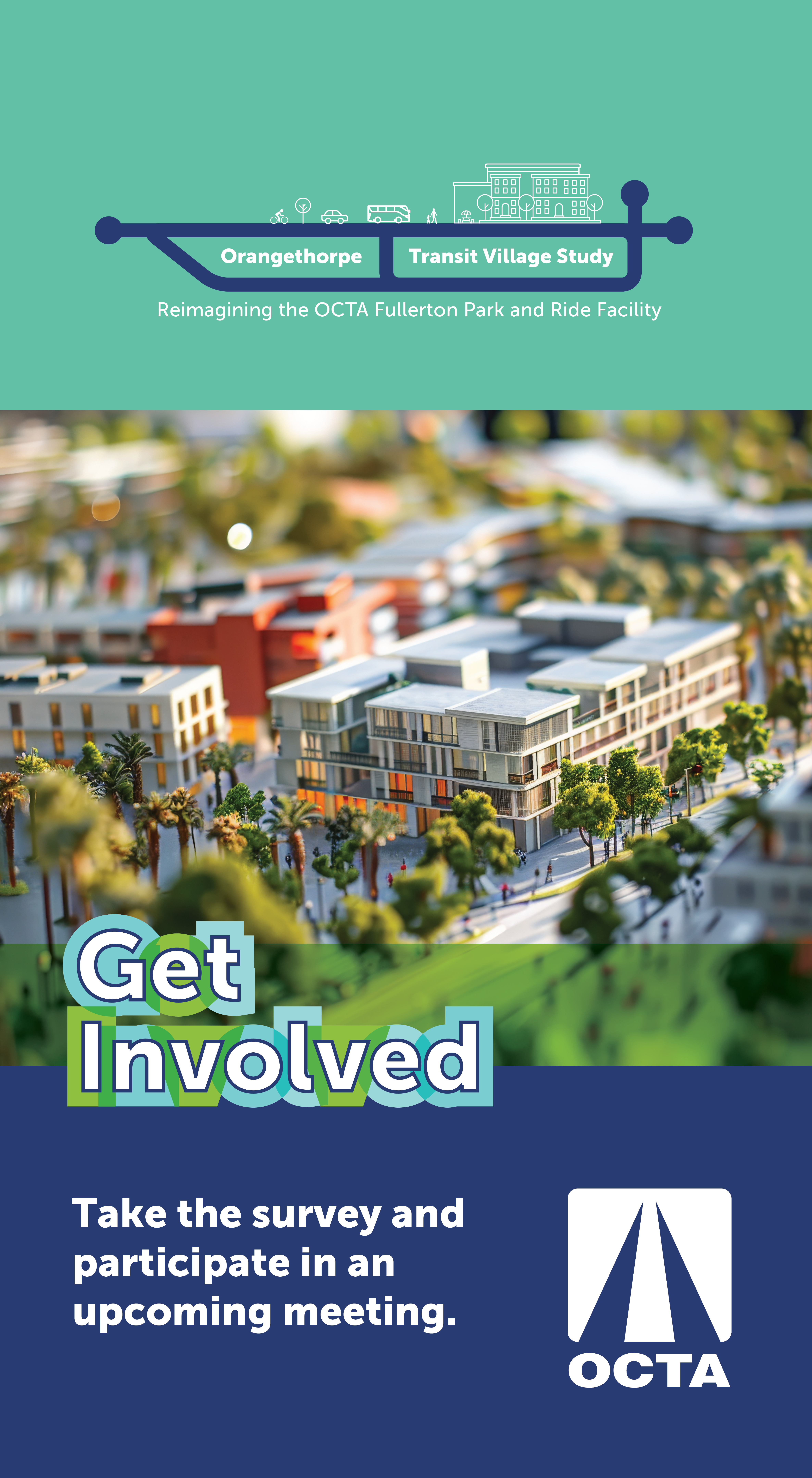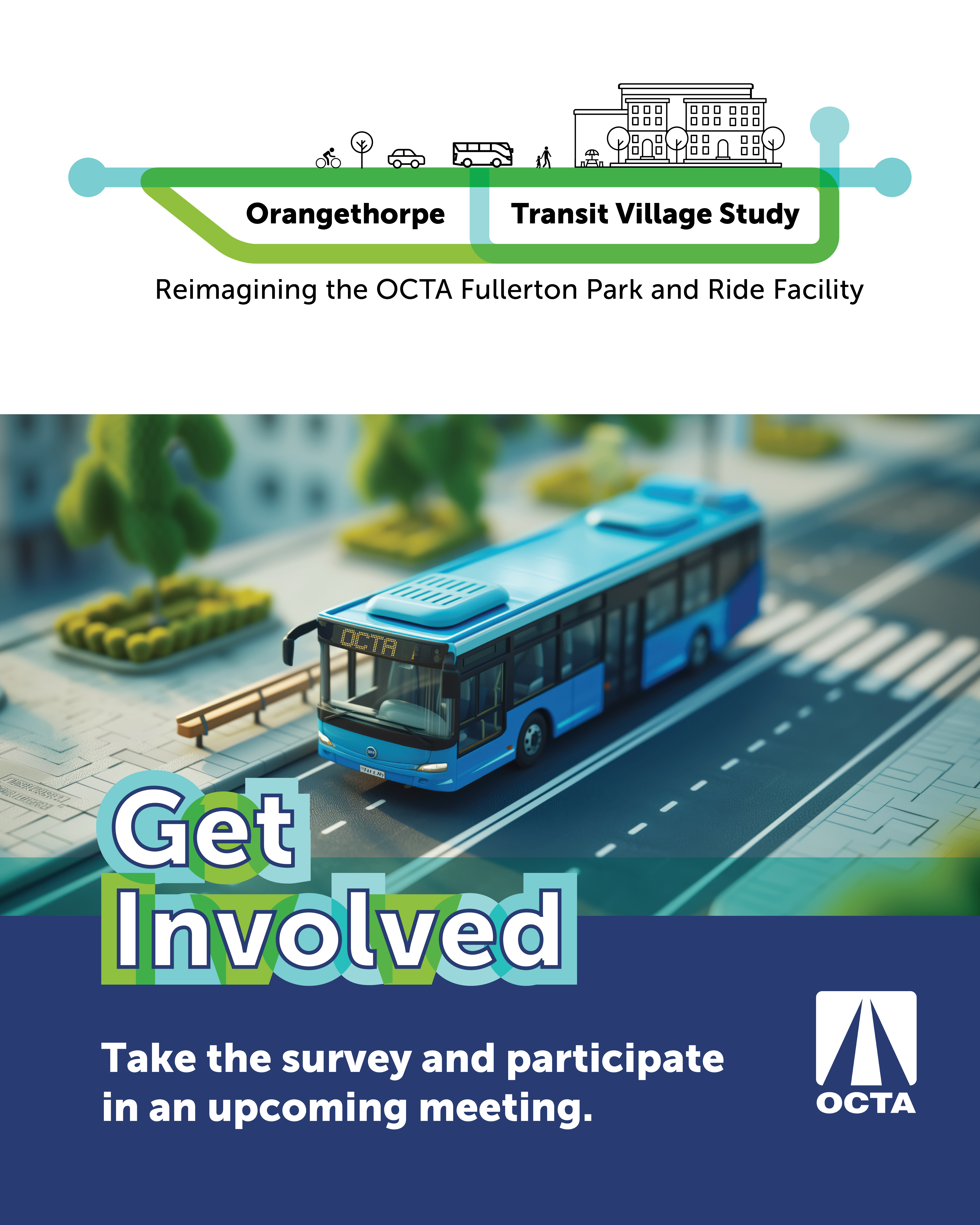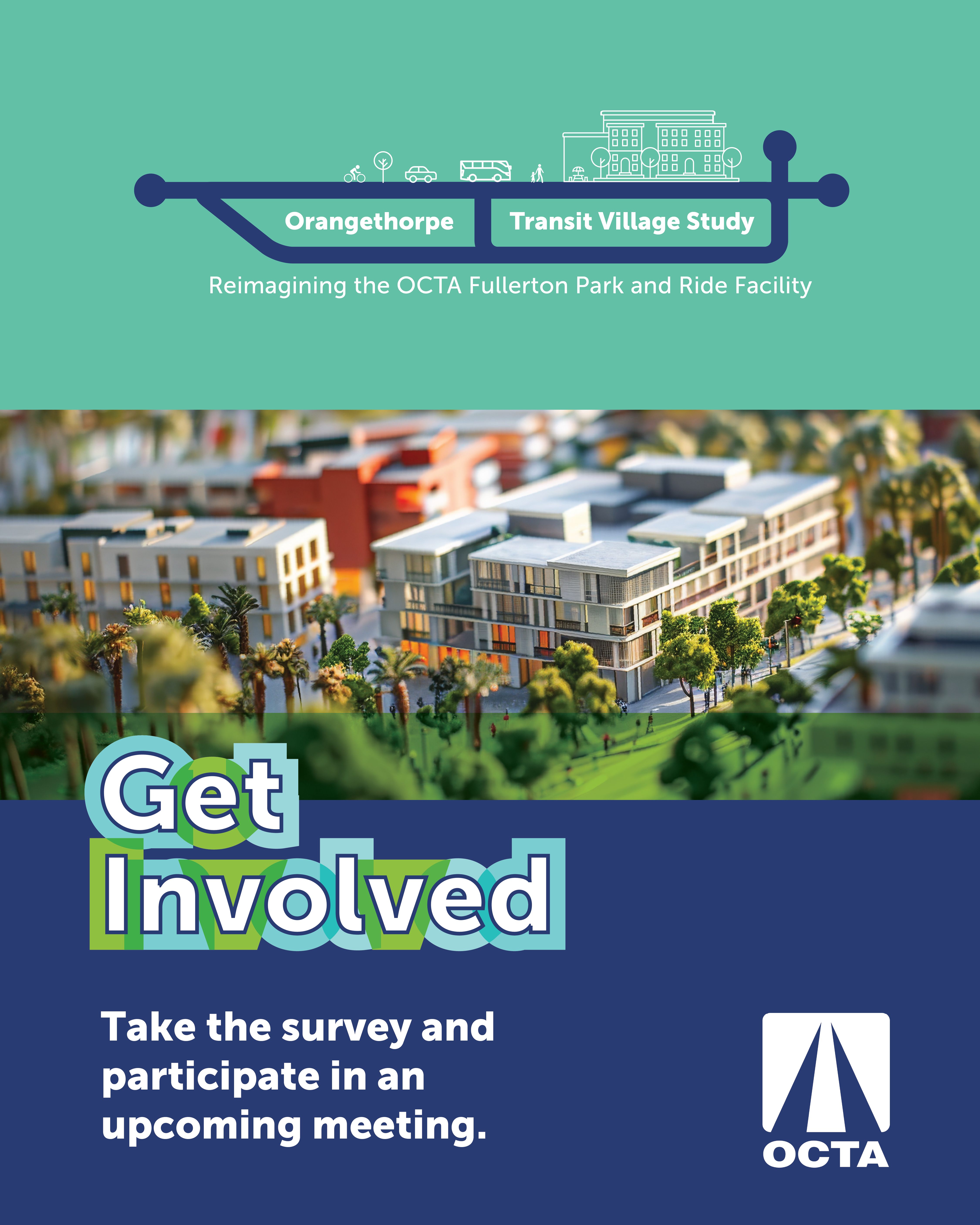 The Orange County Transportation Authority (OCTA), in partnership with the City of Fullerton, is conducting the Orangethorpe Transit Village Conceptual Study (Study) that will explore the potential for transit-supportive development at the Fullerton Park and Ride Facility. The Study will analyze mixed-use development concepts that could include neighborhood retail, offices, and housing. The Study intends to preserve the transit and park and ride functions at the site while enhancing the sense of community and place, complementing surrounding developments, increasing access to sustainable mobility options, and improving the transit rider experience.