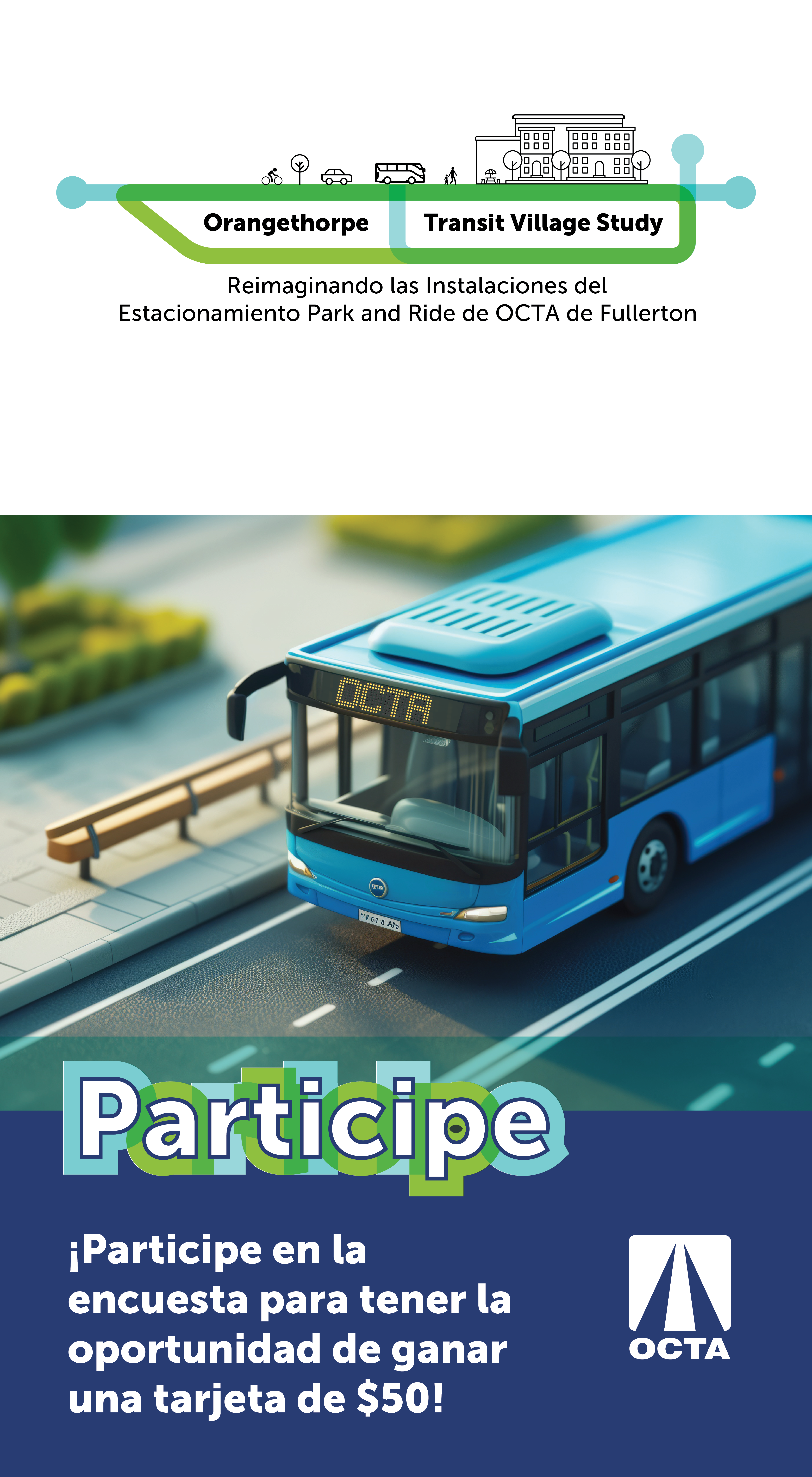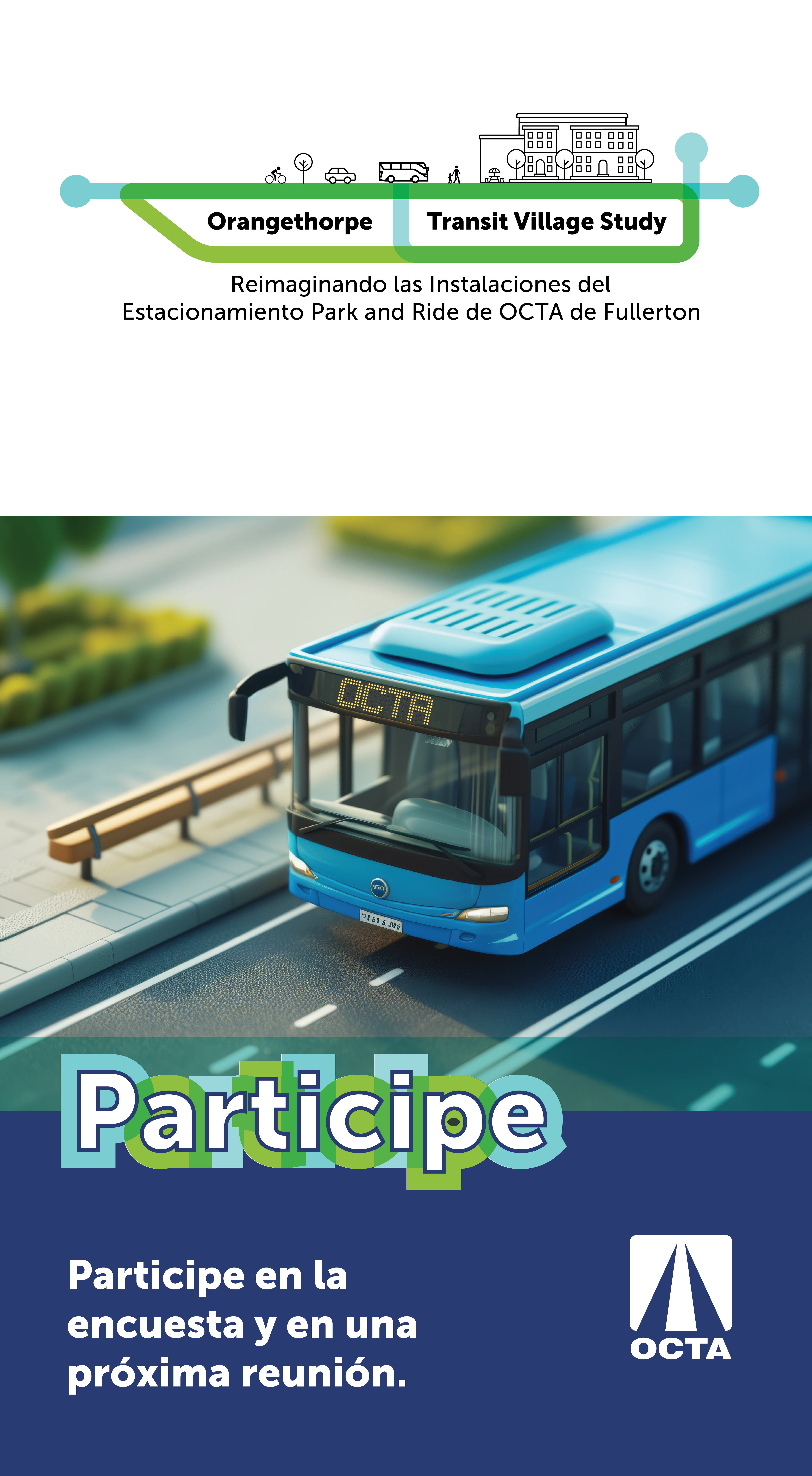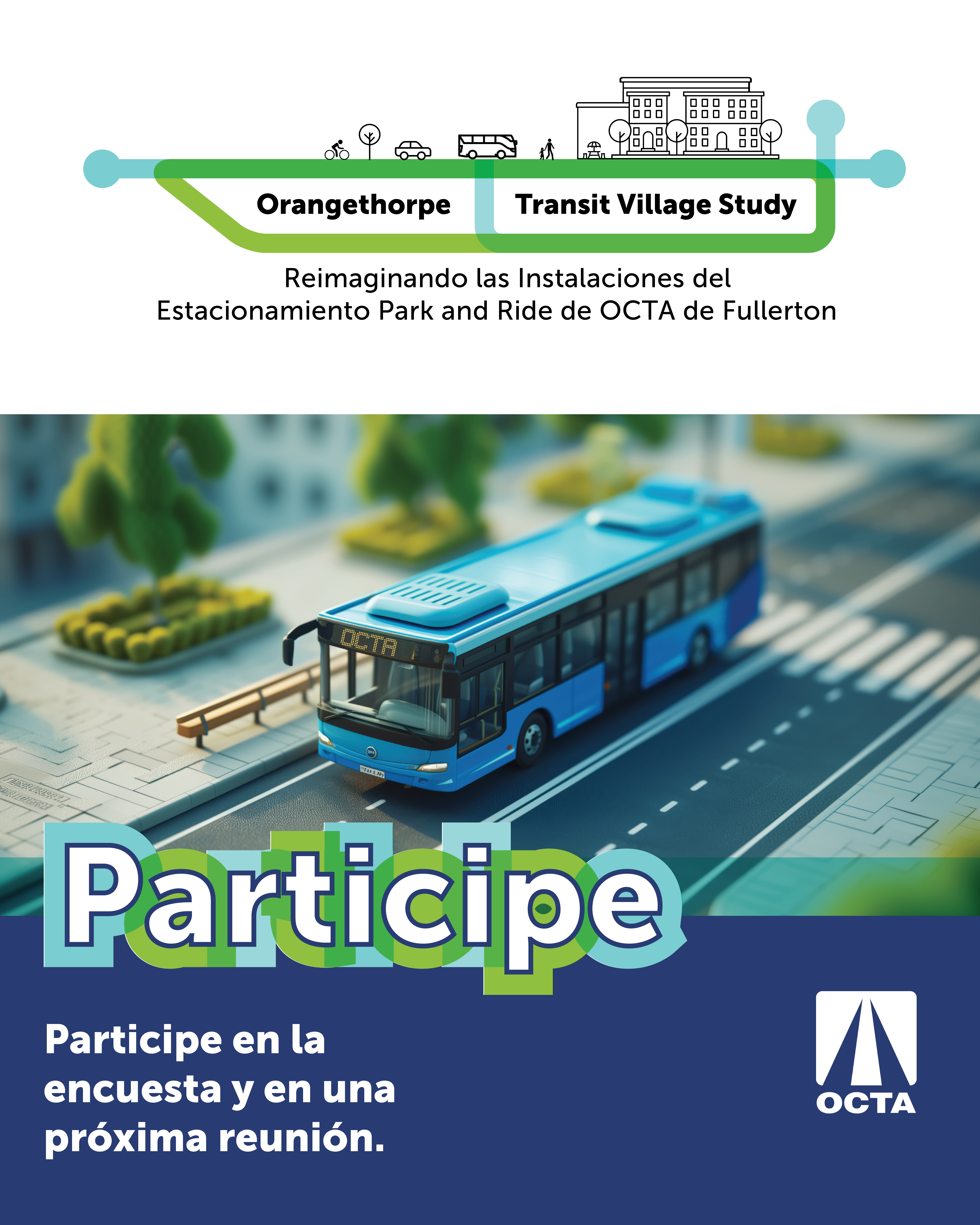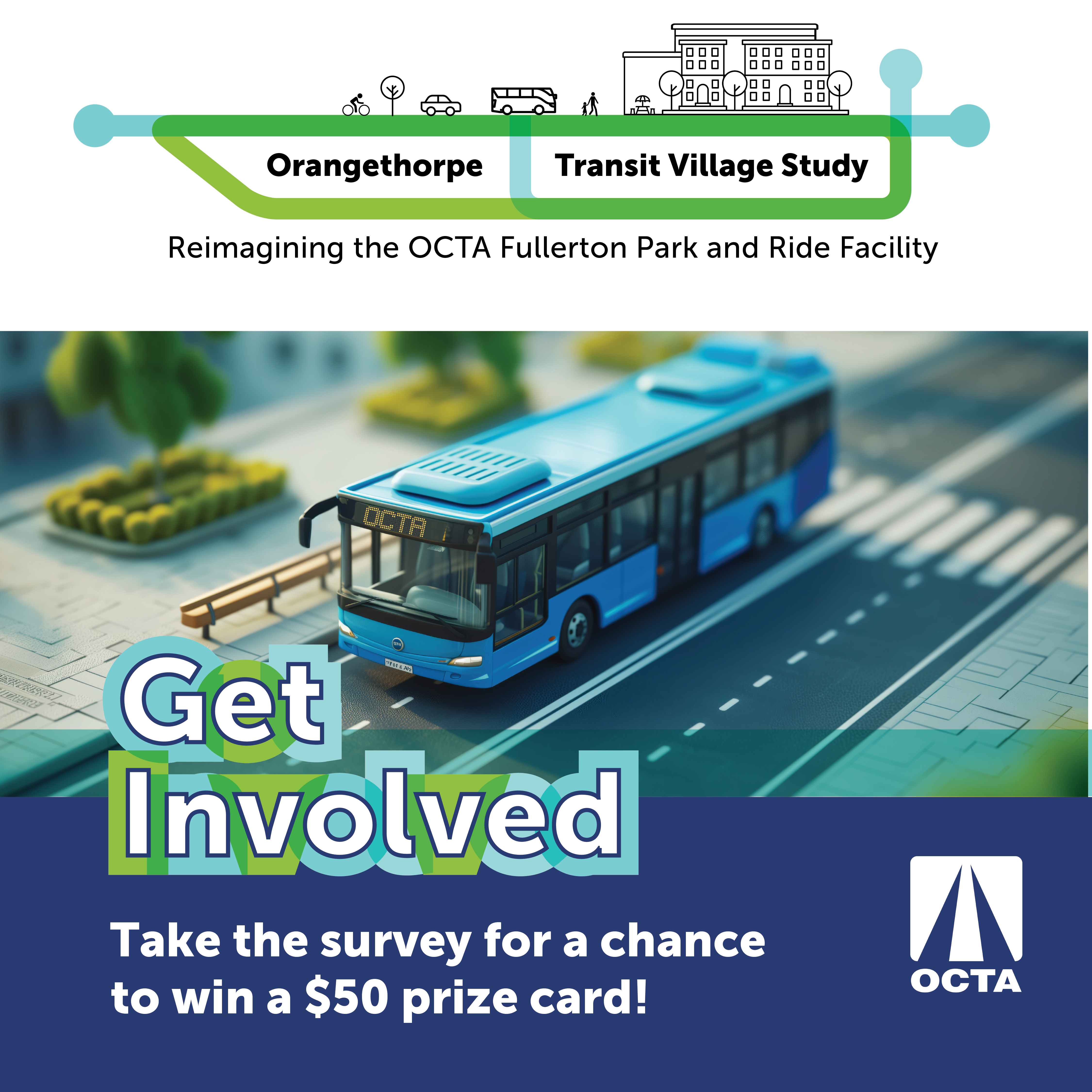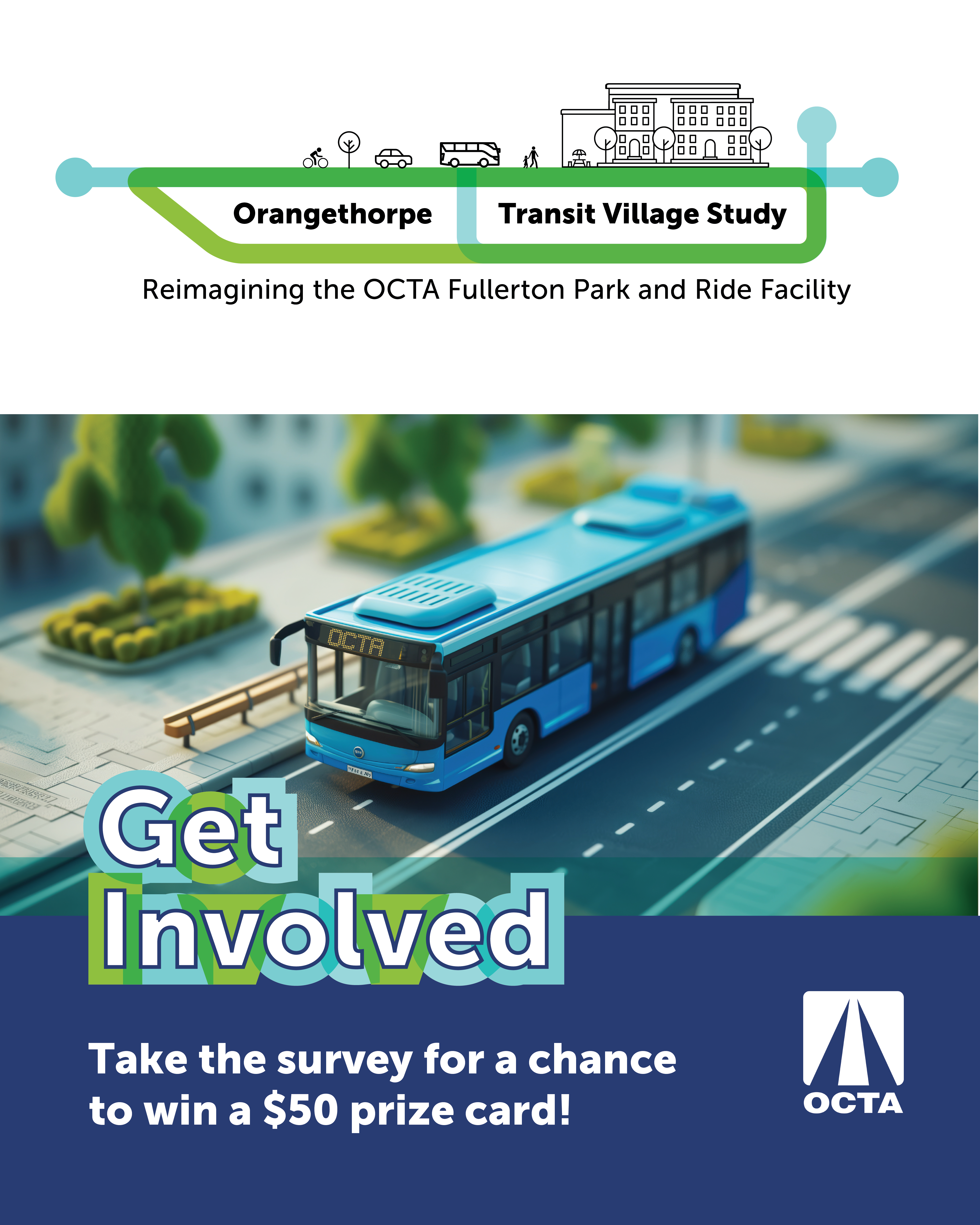 The Orange County Transportation Authority (OCTA), in partnership with the City of Fullerton, is conducting the Orangethorpe Transit Village Conceptual Study (Study) that will explore the potential for transit-supportive development at the Fullerton Park and Ride Facility. The Study will analyze mixed-use development concepts that could include neighborhood retail, offices, and housing. The Study intends to preserve the transit and park and ride functions at the site while enhancing the sense of community and place, complementing surrounding developments, increasing access to sustainable mobility options, and improving the transit rider experience.