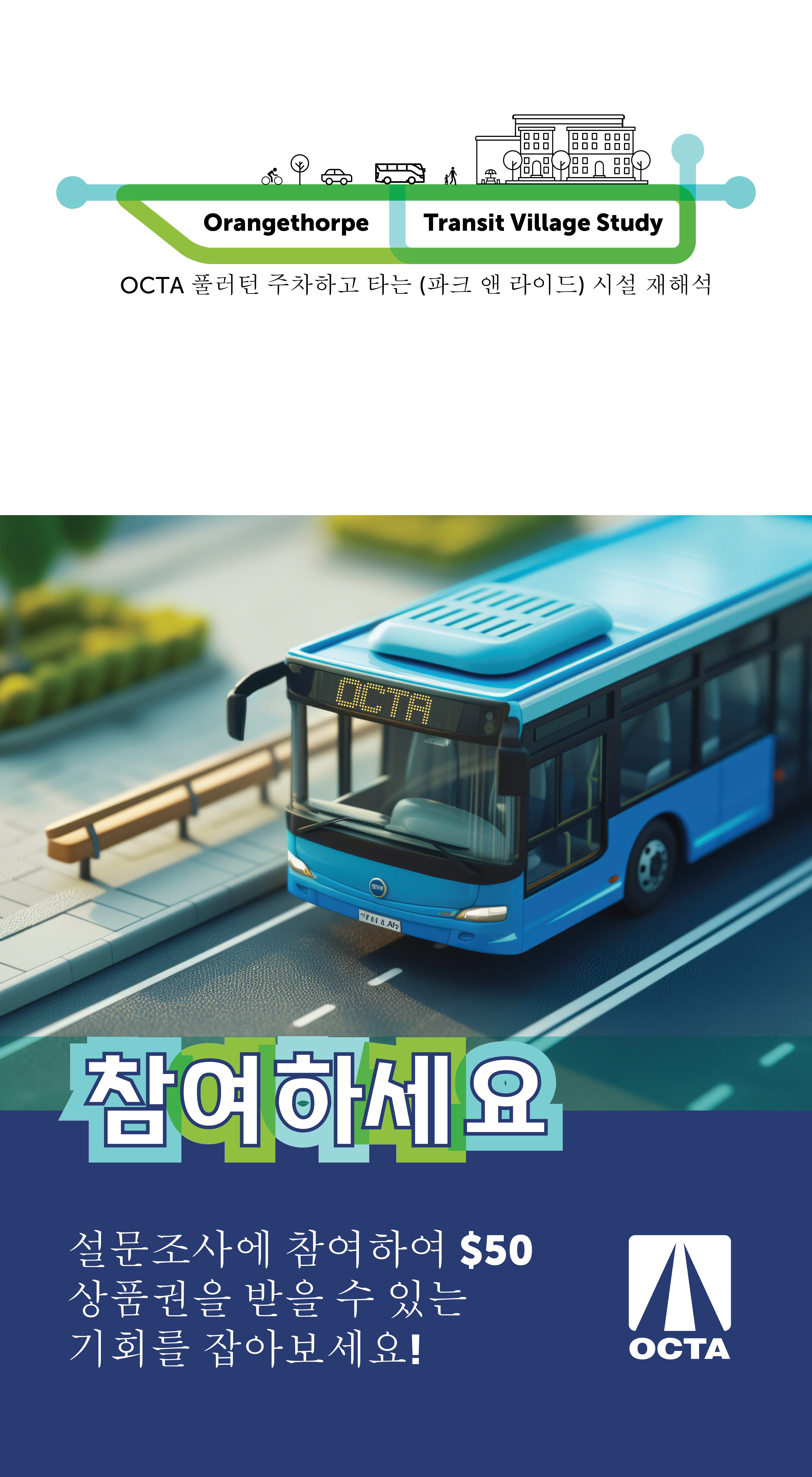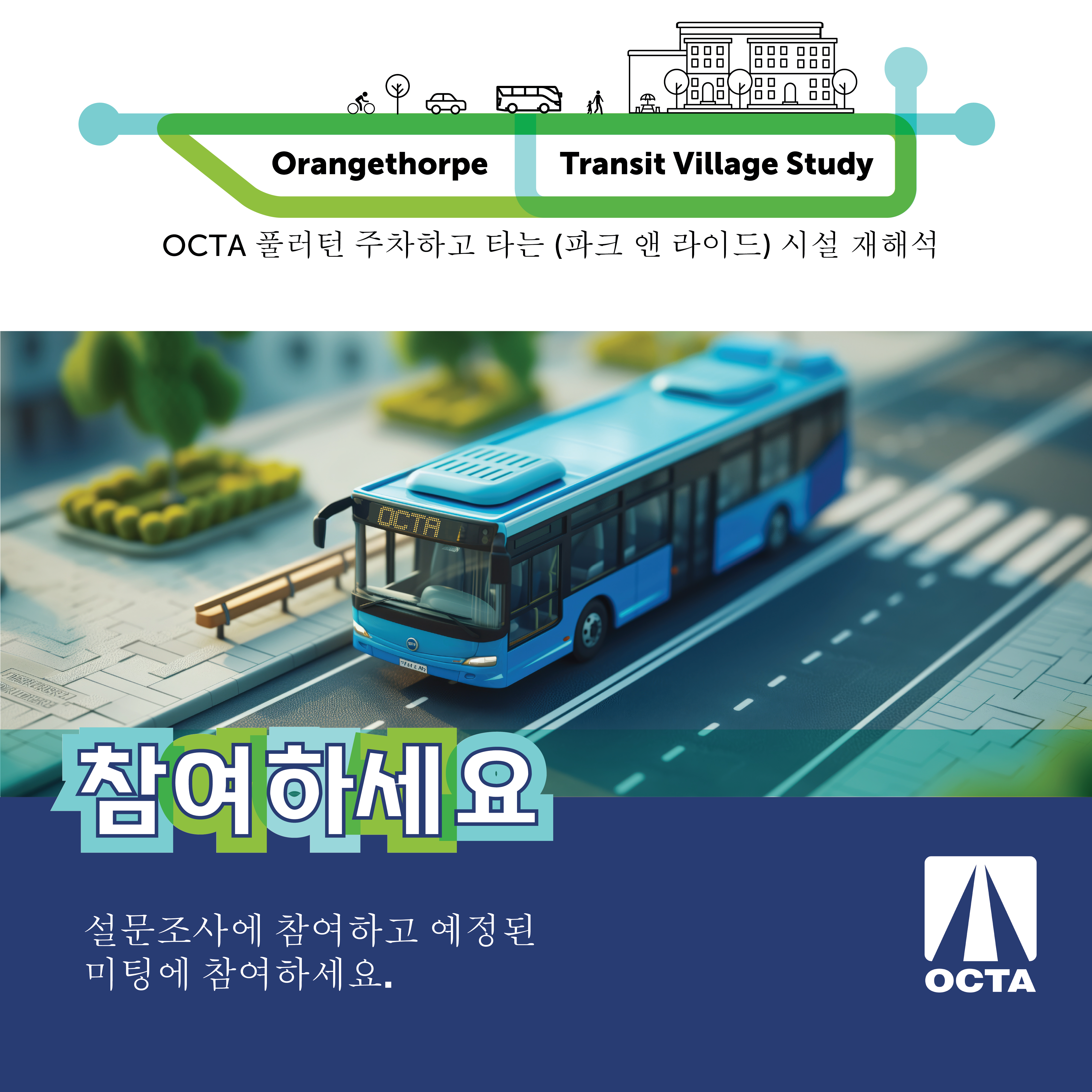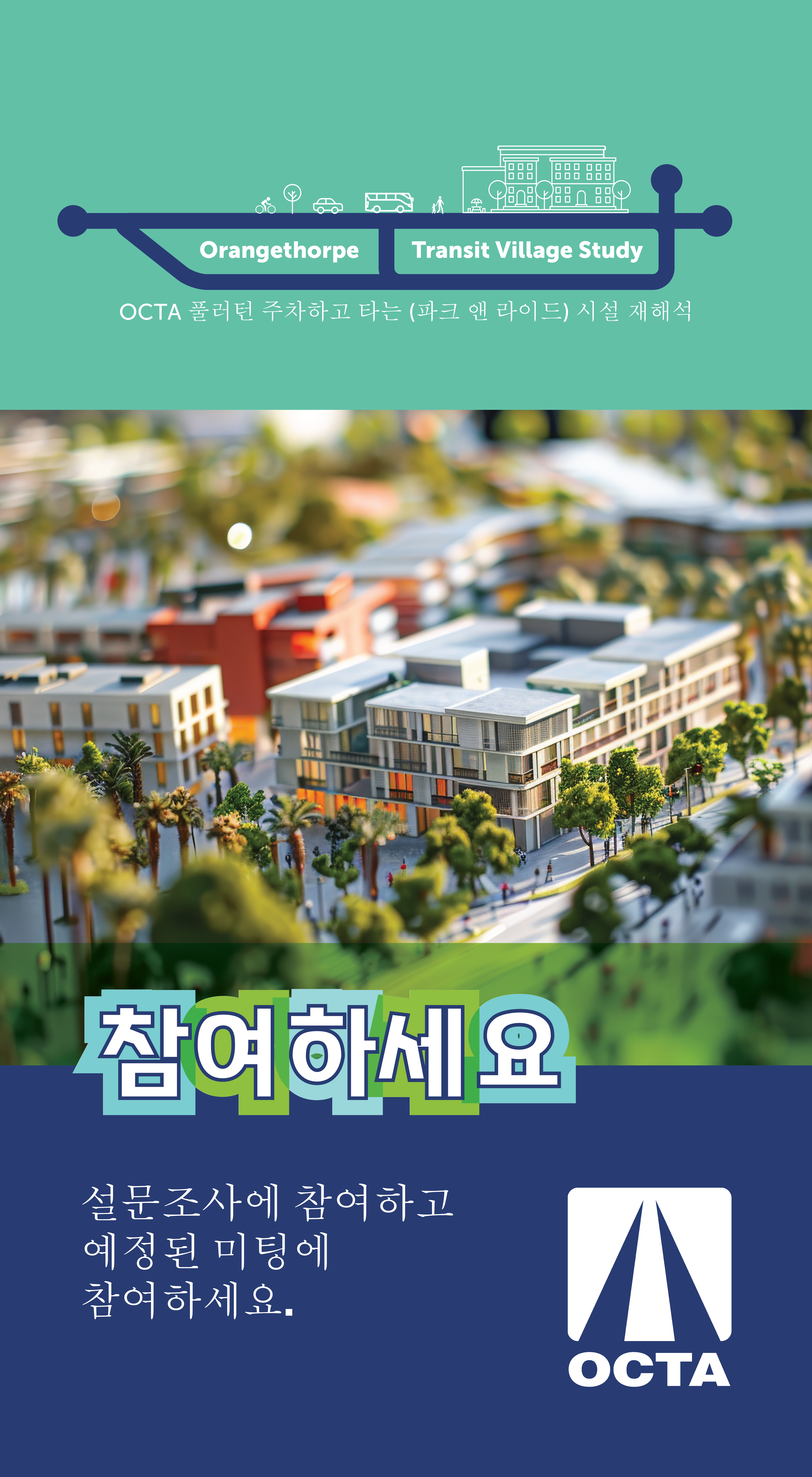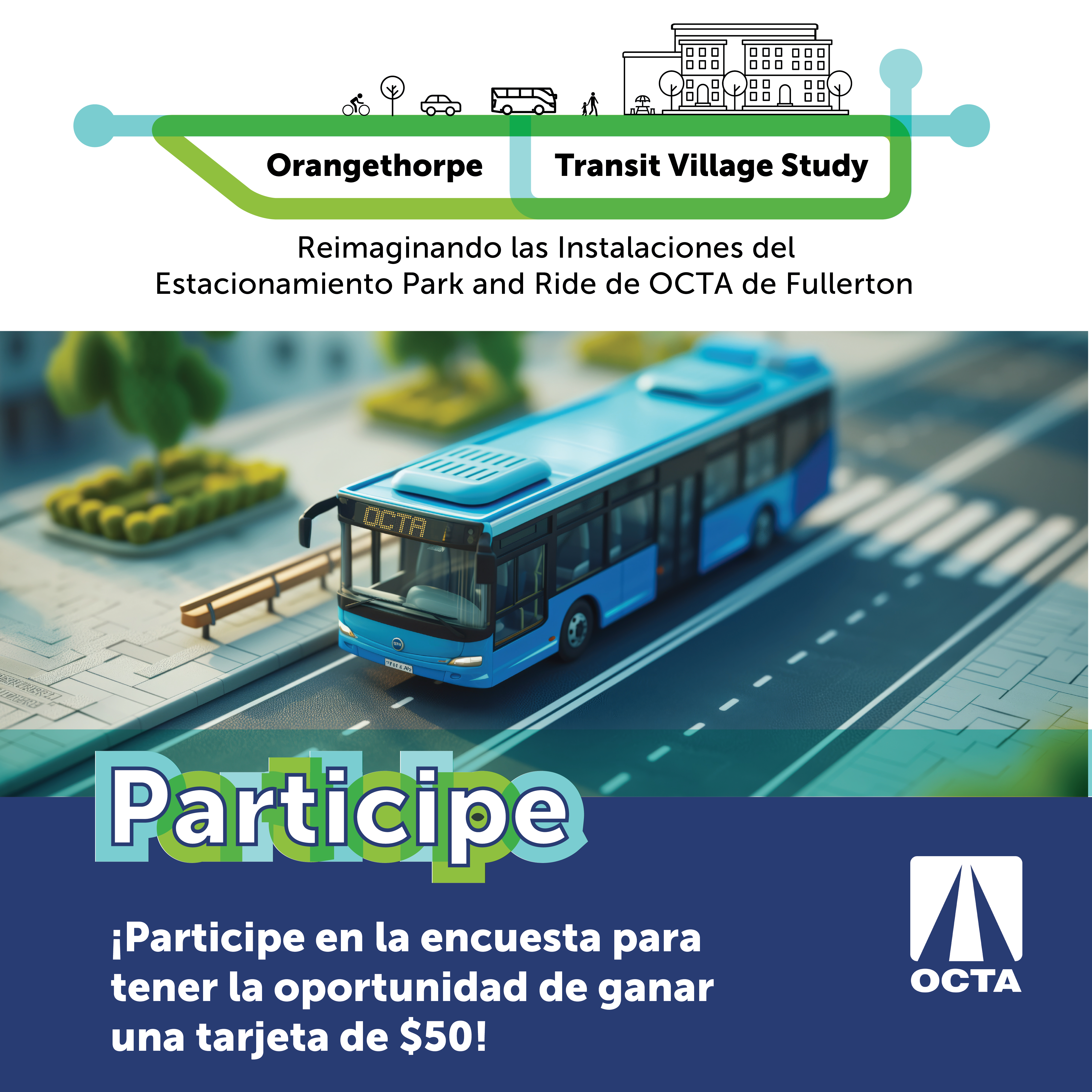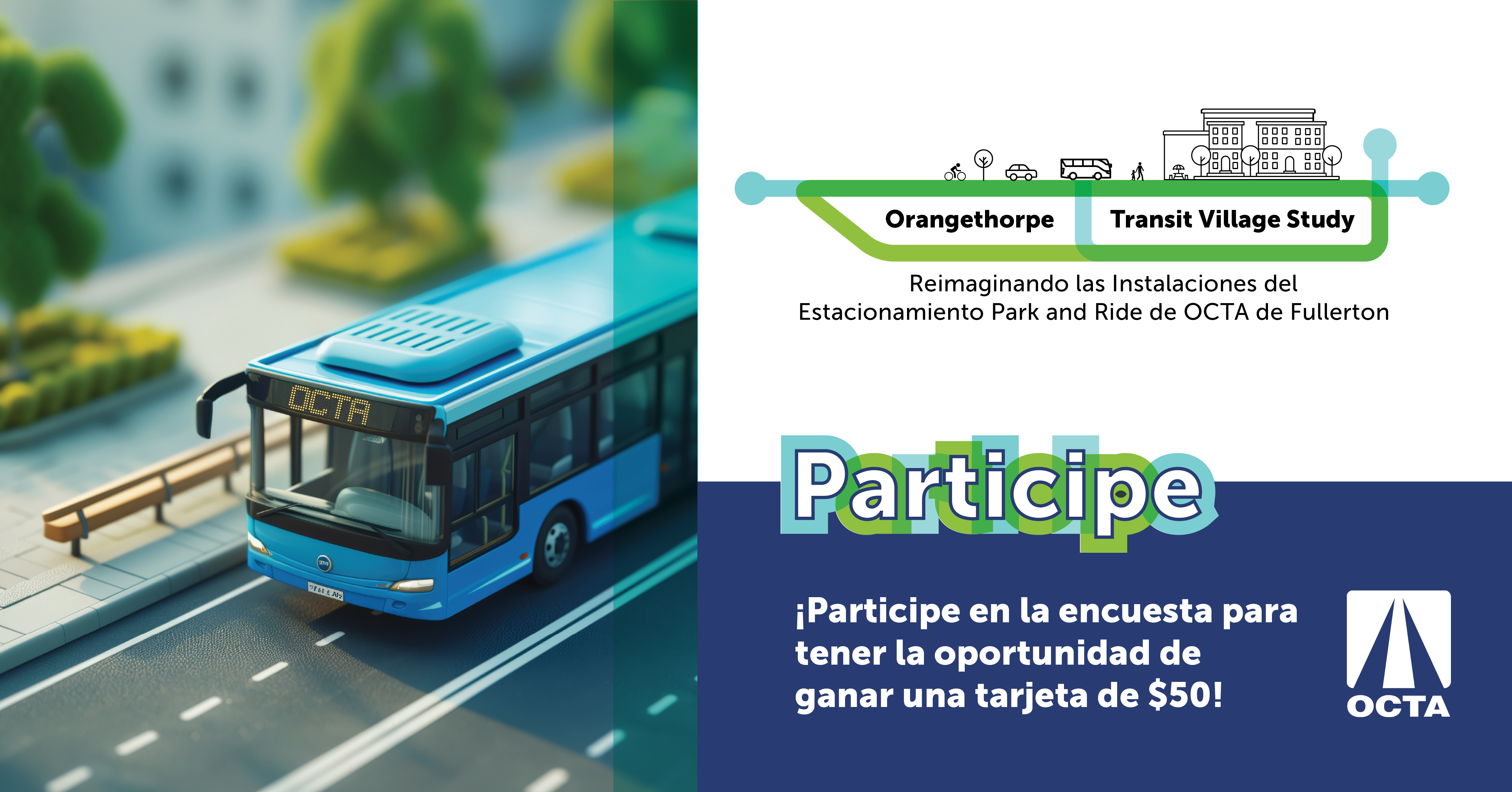 The Orange County Transportation Authority (OCTA), in partnership with the City of Fullerton, is conducting the Orangethorpe Transit Village Conceptual Study (Study) that will explore the potential for transit-supportive development at the Fullerton Park and Ride Facility. The Study will analyze mixed-use development concepts that could include neighborhood retail, offices, and housing. The Study intends to preserve the transit and park and ride functions at the site while enhancing the sense of community and place, complementing surrounding developments, increasing access to sustainable mobility options, and improving the transit rider experience.