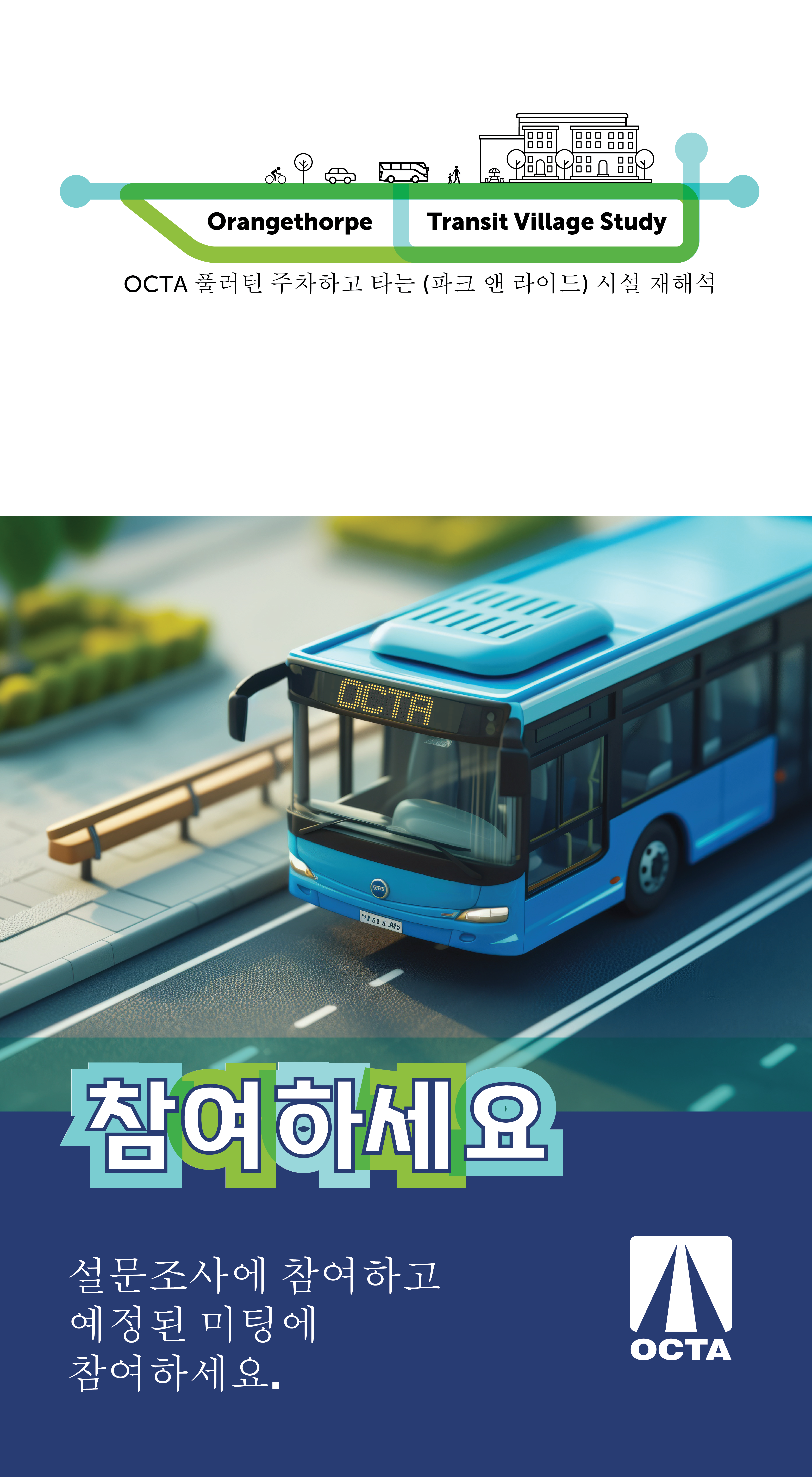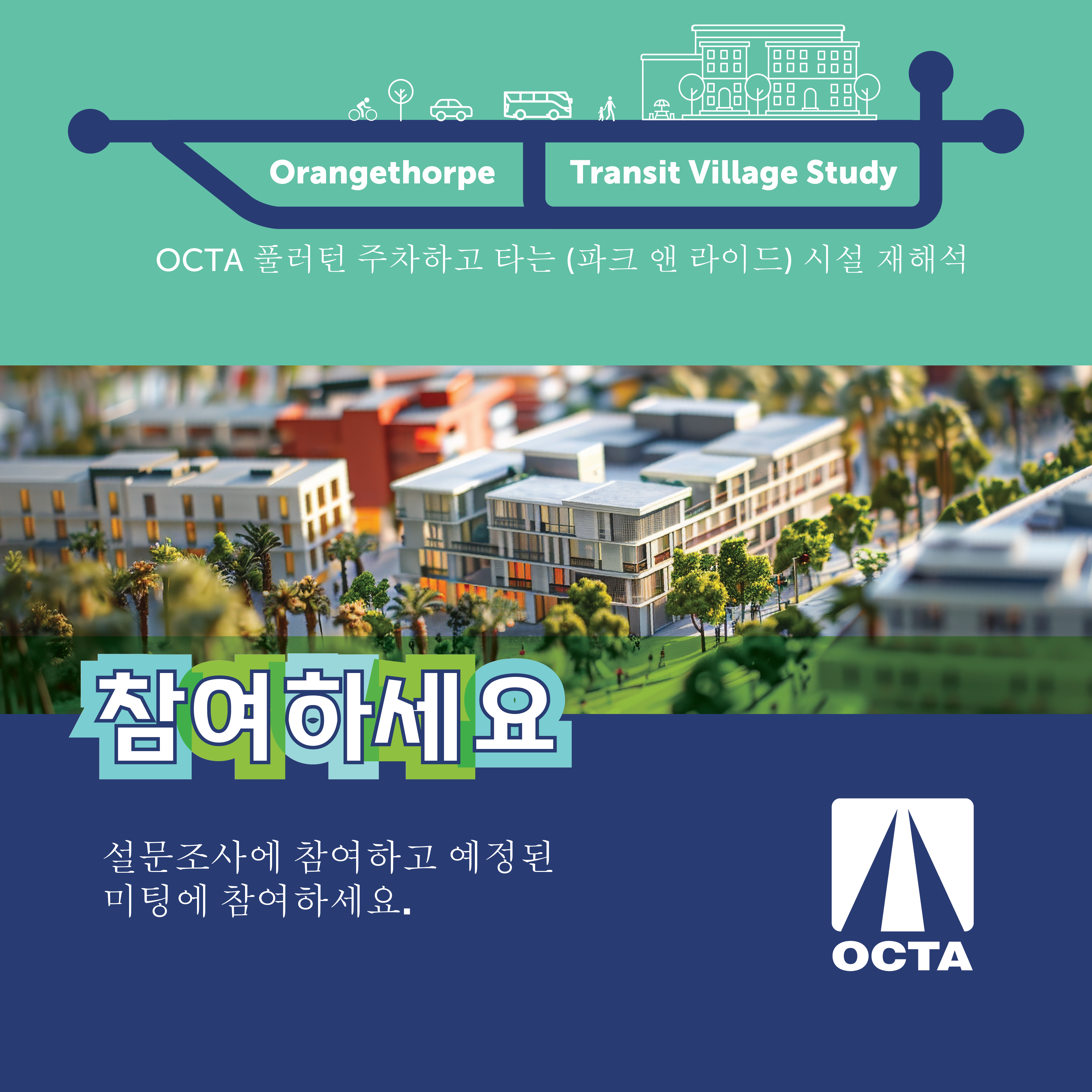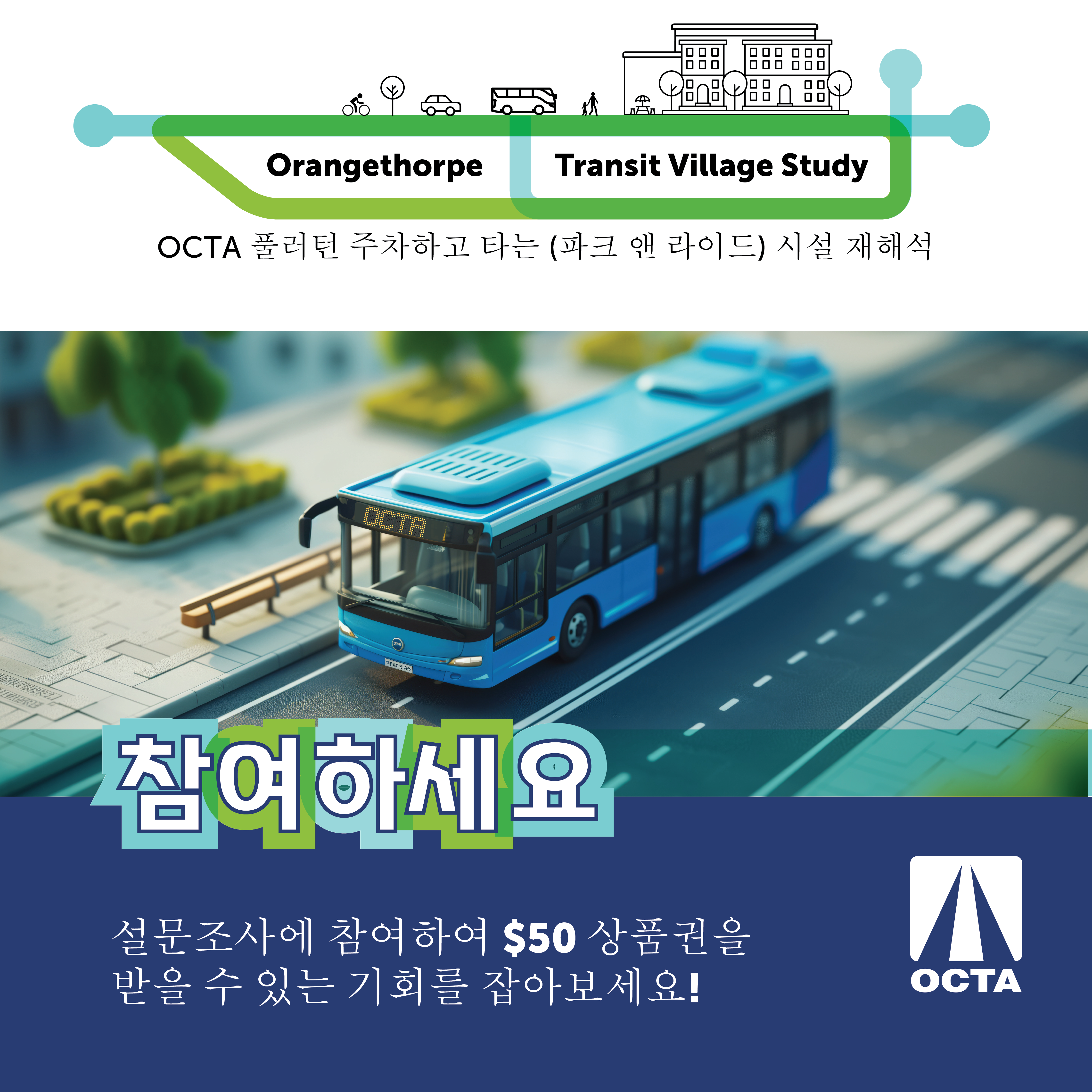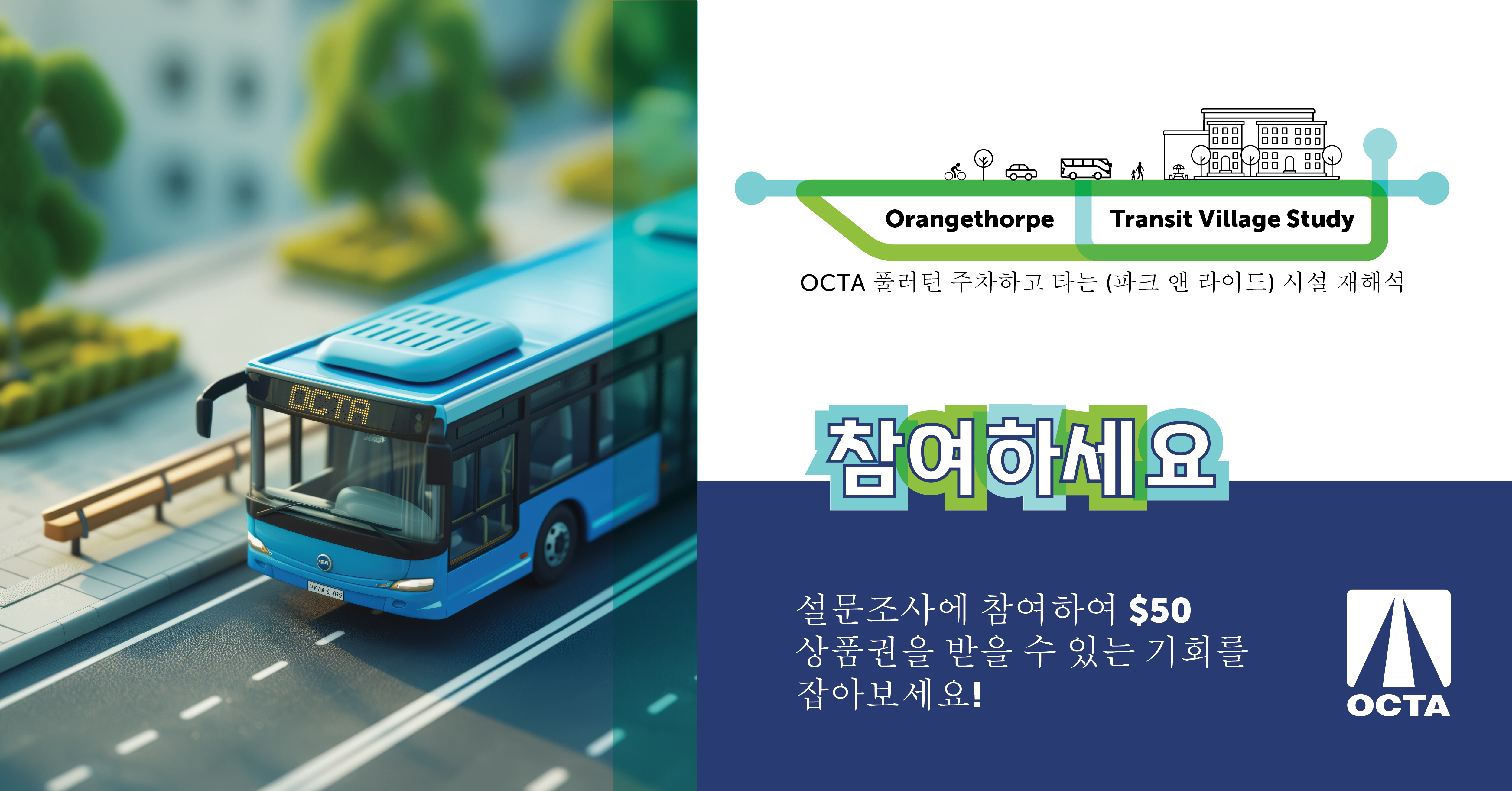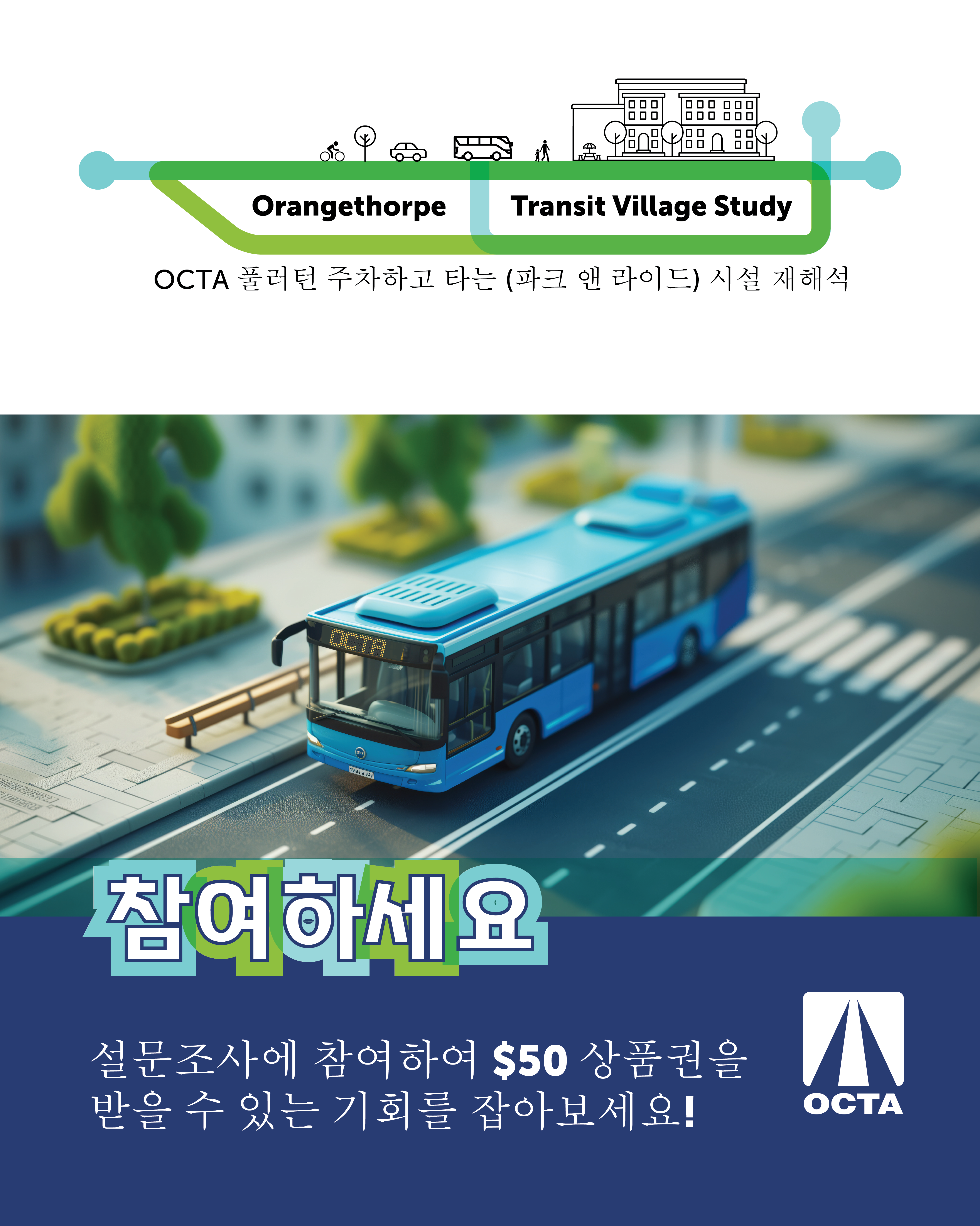 The Orange County Transportation Authority (OCTA), in partnership with the City of Fullerton, is conducting the Orangethorpe Transit Village Conceptual Study (Study) that will explore the potential for transit-supportive development at the Fullerton Park and Ride Facility. The Study will analyze mixed-use development concepts that could include neighborhood retail, offices, and housing. The Study intends to preserve the transit and park and ride functions at the site while enhancing the sense of community and place, complementing surrounding developments, increasing access to sustainable mobility options, and improving the transit rider experience.