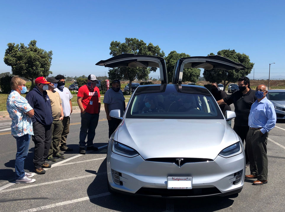 ORANGE – The doors to a Tesla Model X SUV swung open for the first time to five long-distance commuters, making it the first all-electric vehicle in OCTA’s Vanpool program.