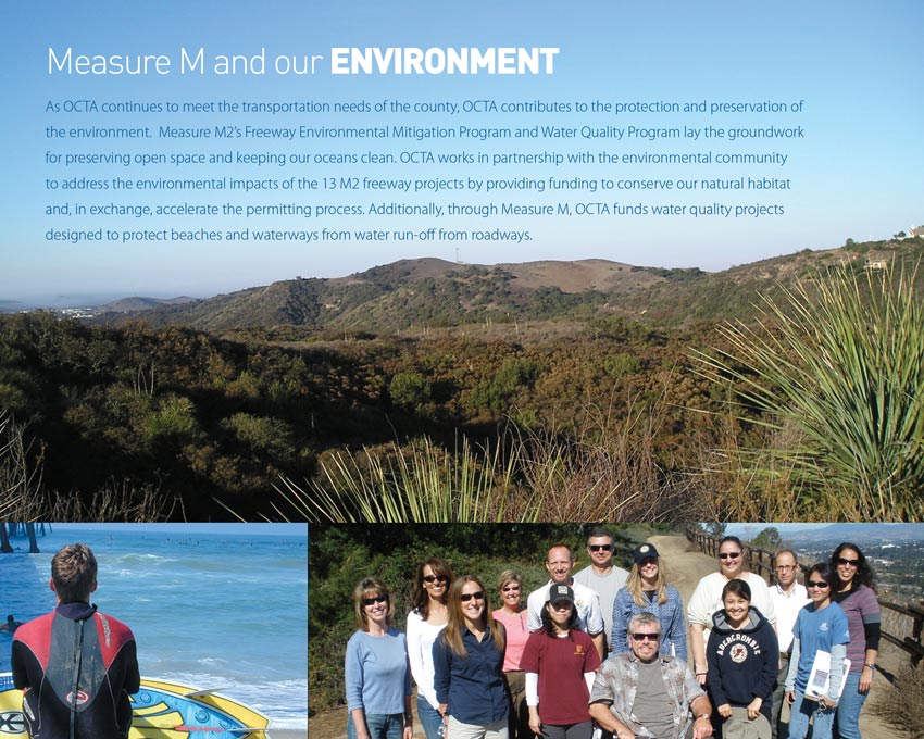 OCTA is developing a second water quality improvement funding source that will target regional, capital-intensive water quality improvement projects, including bioswales, constructed wetlands, and detention/infiltration basins. A countywide assessment began to identify water quality priority areas that would be eligible for M2 funding (M2 – Project X).