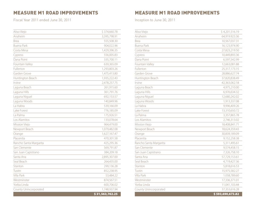 M1 Road Improvements | M2 Fair Share Payment | M1FY 10 - 11 Net Project Costs | M2 Schedule of New Project Costs