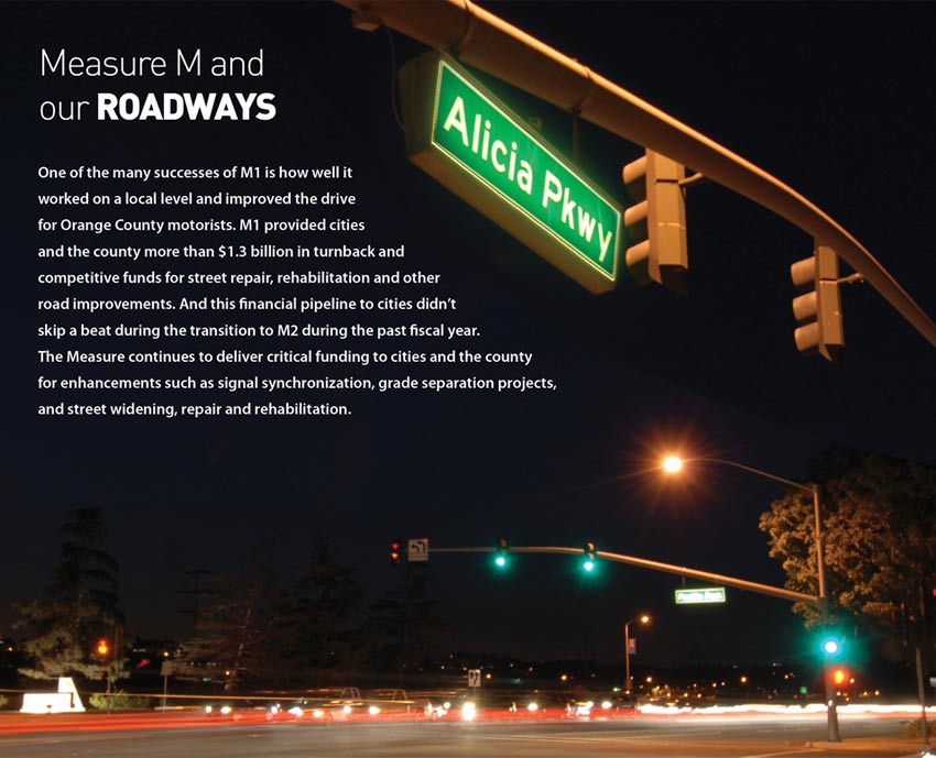 Traffic light coordination continued to be a primary focus under M2. A total of $7.8 million was awarded to synchronize more than 500 signals along 140 miles of Orange County streets and roads as part of the M2 Regional Traffic Signal Synchronization Program (M2 – Project P).