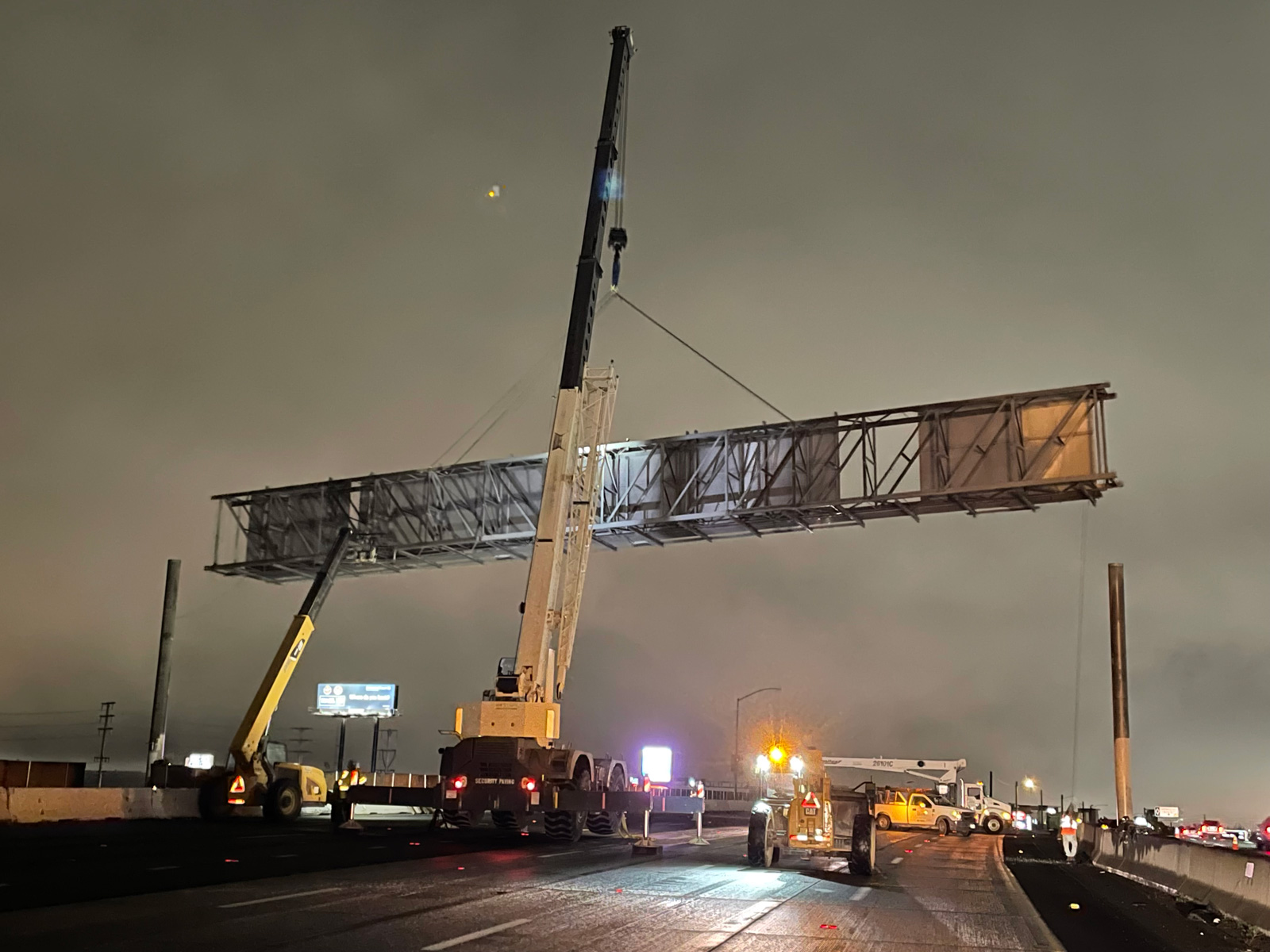 Crews Removing Overhead Sign Structure on Northbound SR-55