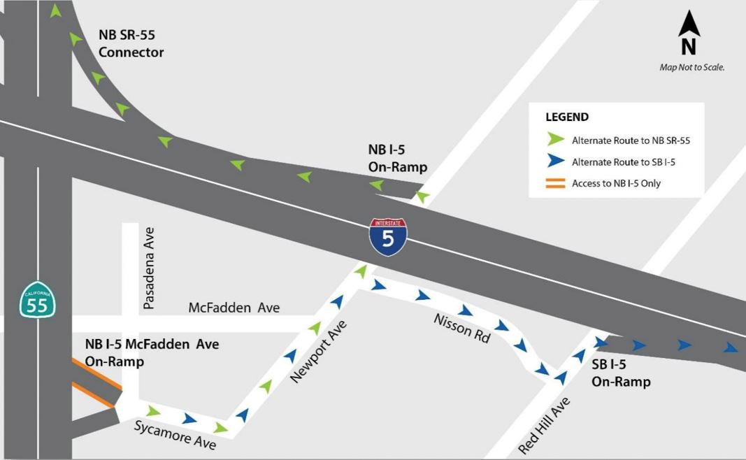 A new drainage system is being constructed along northbound SR-55 adjacent to the Kenyon Pointe and El Paseo properties. Crews are currently constructing the new drainage system and will remove the existing drainage system once the new one is in place.